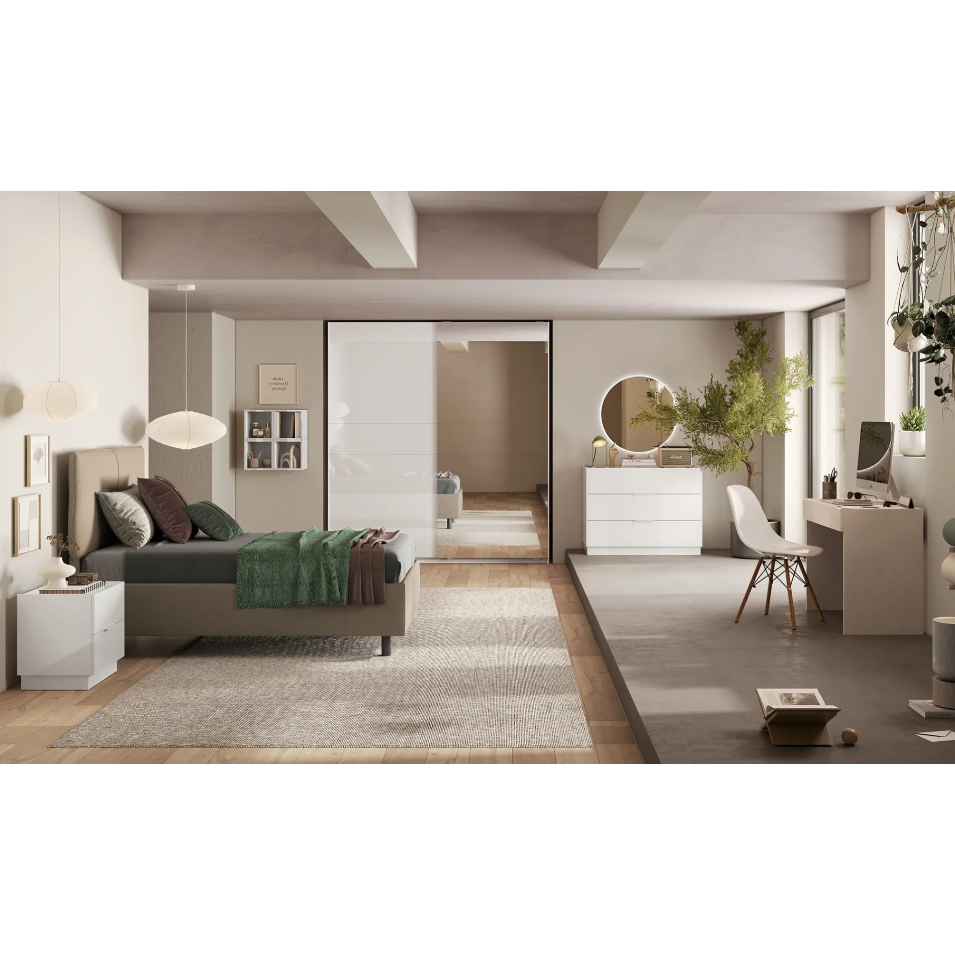 Cameretta con armadio scorrevole, letto una piazza e comodino, collezione Mondo
