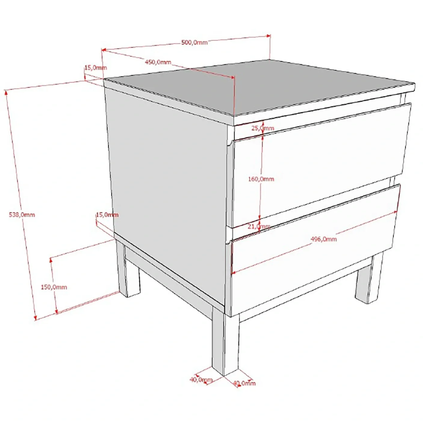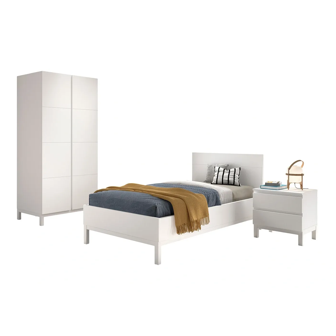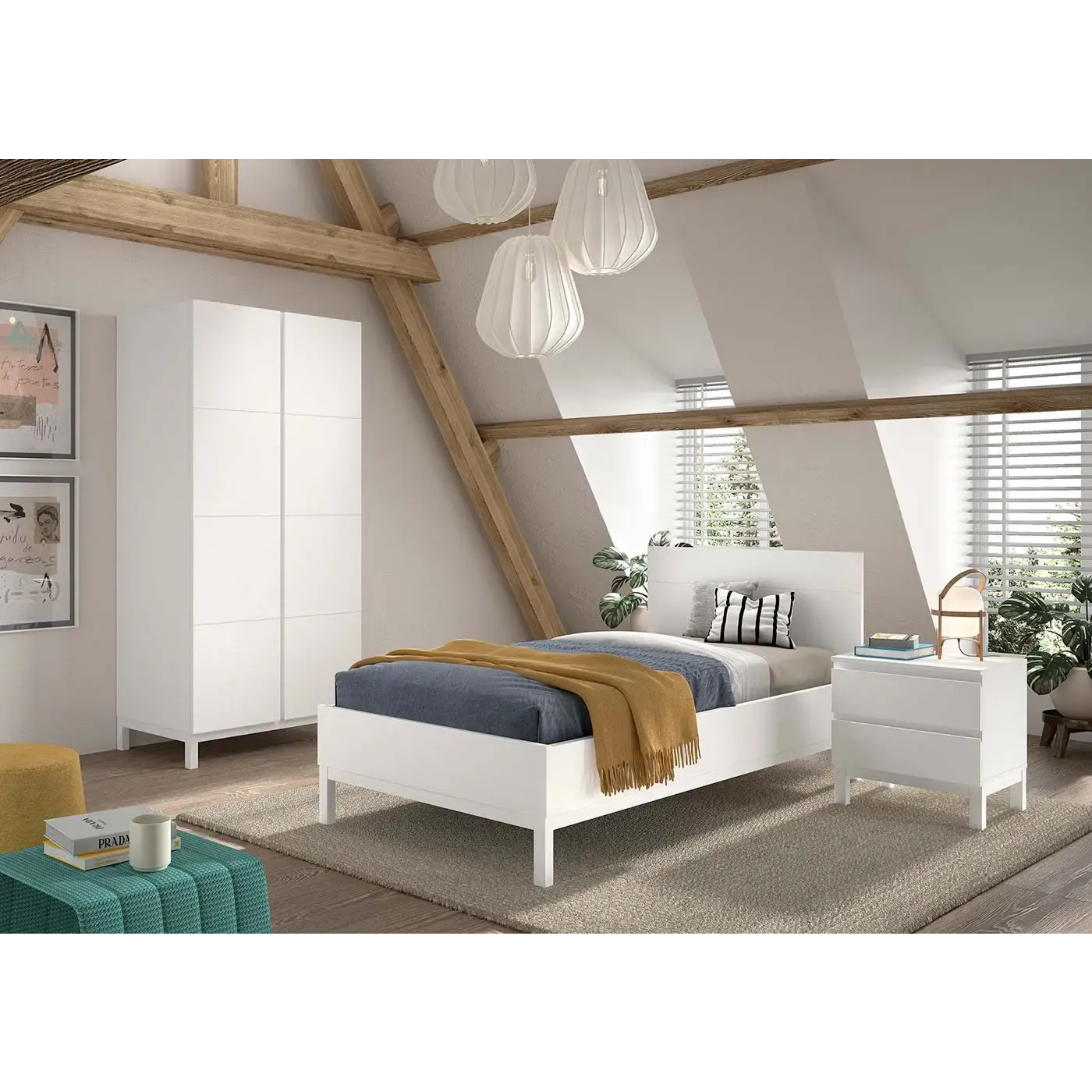 Essa è provvista di un letto dal design semplici ma funzionale, mancante tuttavia della rete a doghe o di una struttura a telaio; di un comodino è dotato di 2 spaziosi cassetti a chiusura ammortizzata; di un armadio a sua volta dotato di 2 ante, un ripiano e un appendiabiti sul lato sinitro, mentre sul destro ci sono 4 ripiani aggiuntivi, che offrono molto spazio per riporre vestiti, biancheria da letto e altro ancora.