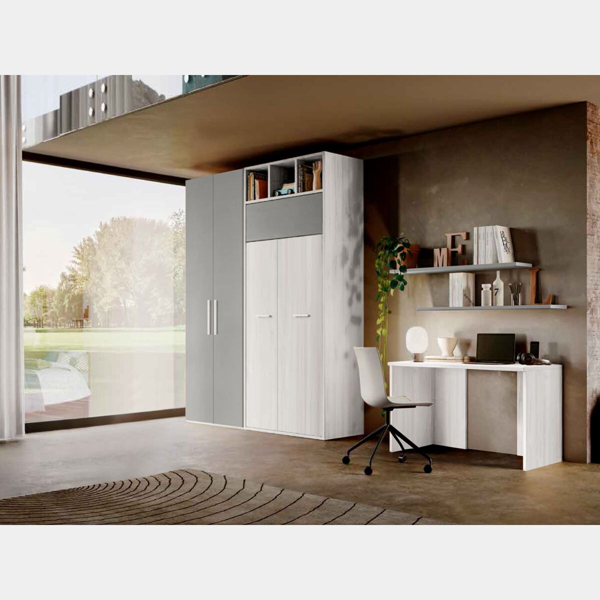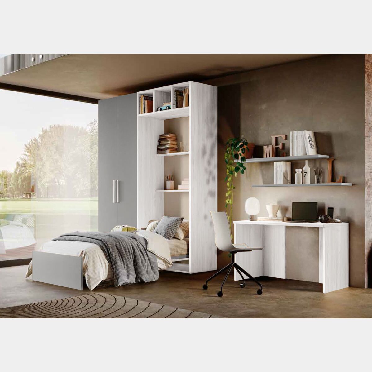 Cameretta con letto salvaspazio, armadio a 2 ante e scrivania, Bianco altea e Grigio