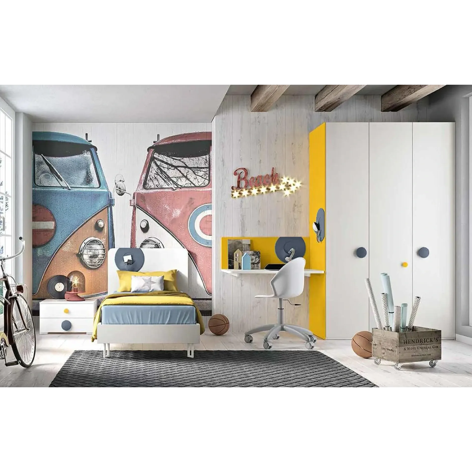 Cameretta con letto singolo e armadio battente, finitura Bianco frassino e Girasole