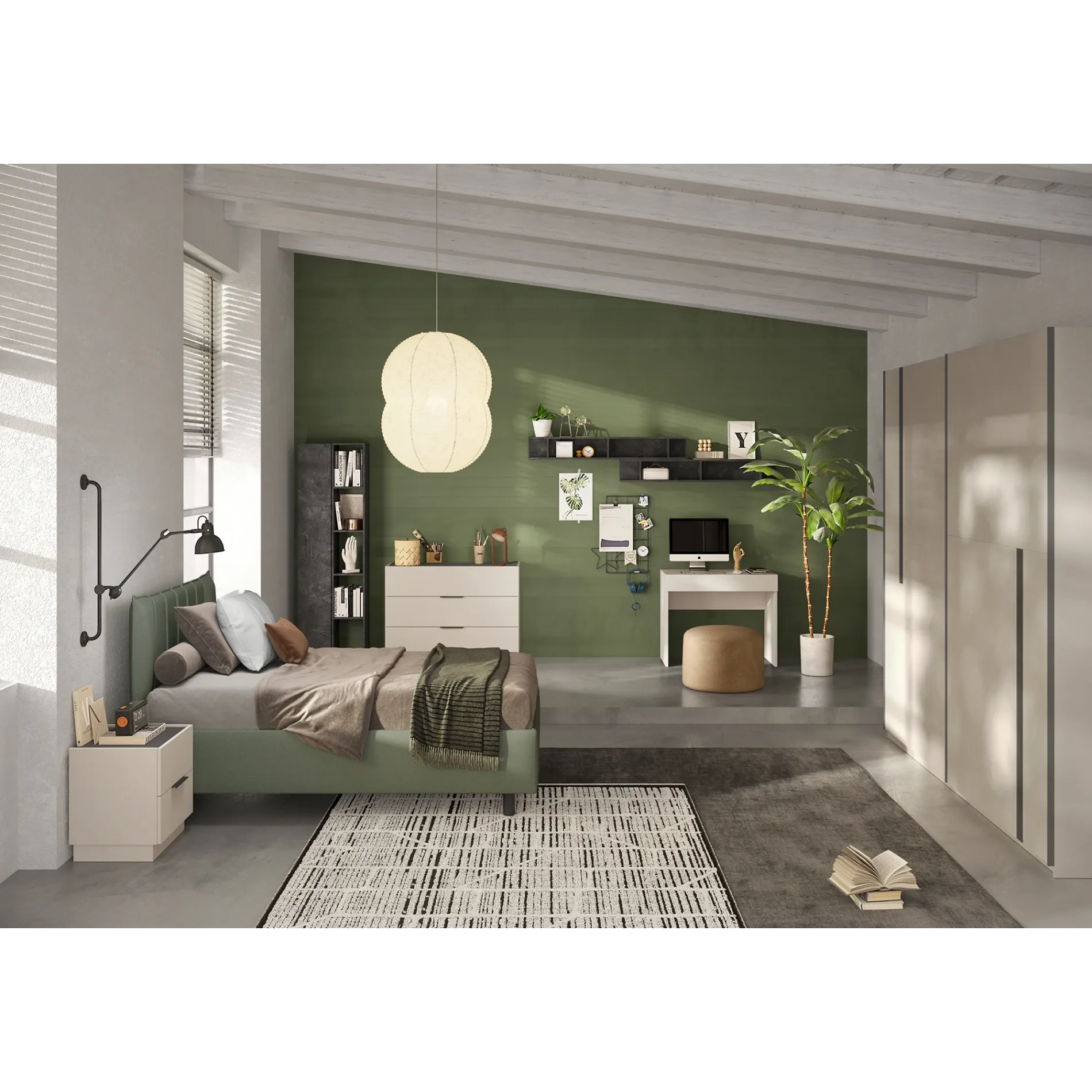 Cameretta Cashmere e Antracite, letto una piazza e mezza Salvia, collezione Mondo