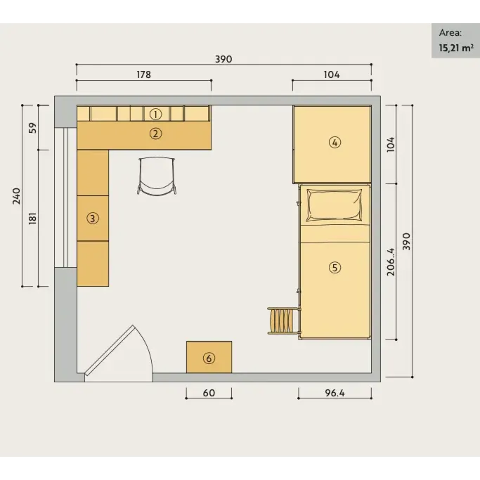 • Zona studio: prodotto con pannelli in agglomerato di legno, scrivania sp.1,8, gambe in profilato di alluminio estruso, vernicato a polveri epossidiche. Conteniore sospeso con schienale e ripiano sp.1,8 cm