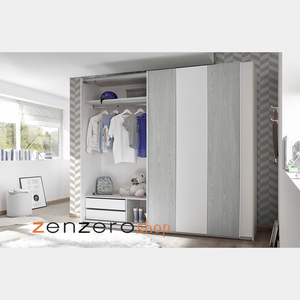 - Armadio Vertigo a 2 ante scorrevoli in colore bianco opaco e grigio: L.179 H.205 P.57 cm