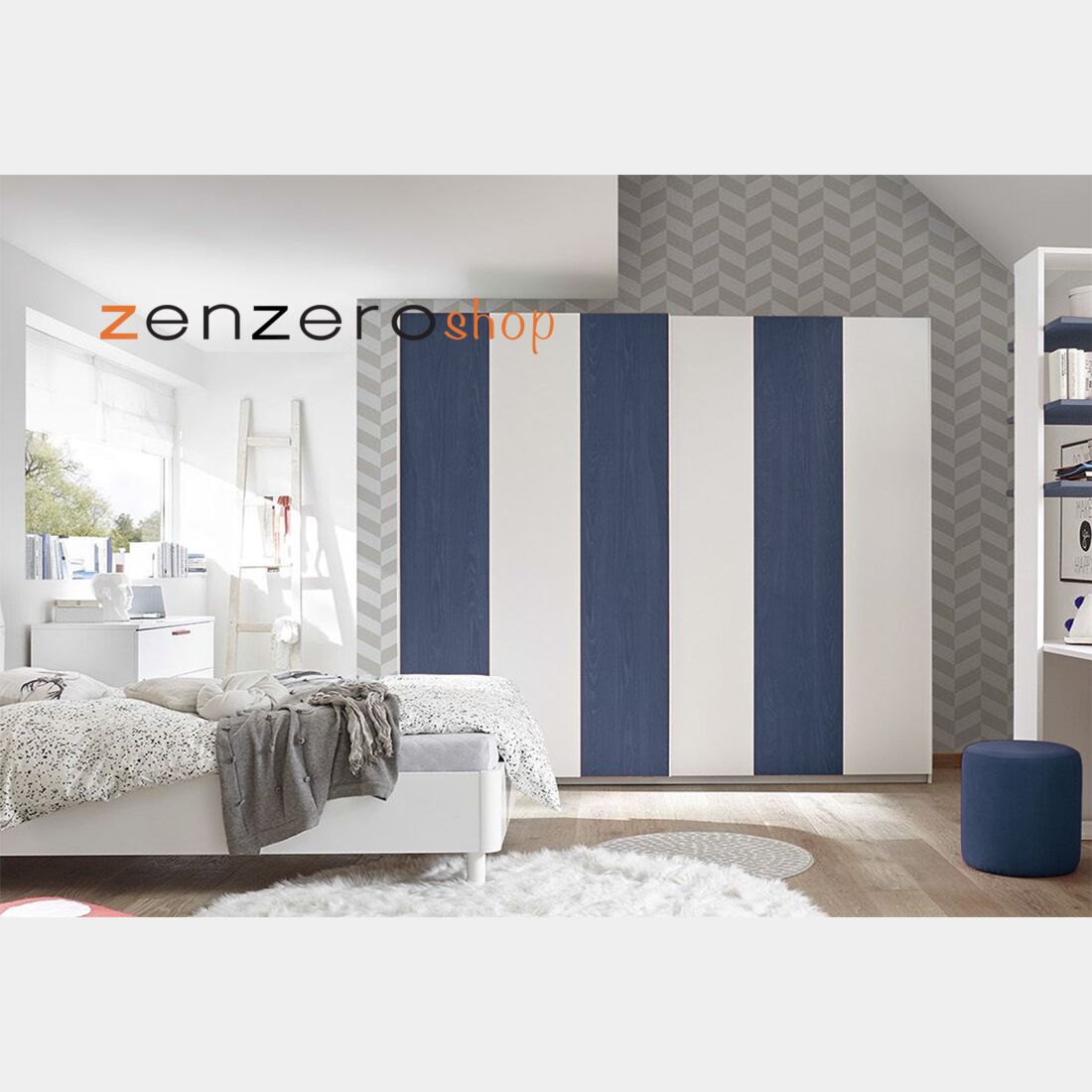 - Armadio Vertigo a 2 ante scorrevoli in colore bianco opaco e Blu: L.179 H.205 P.57 cm