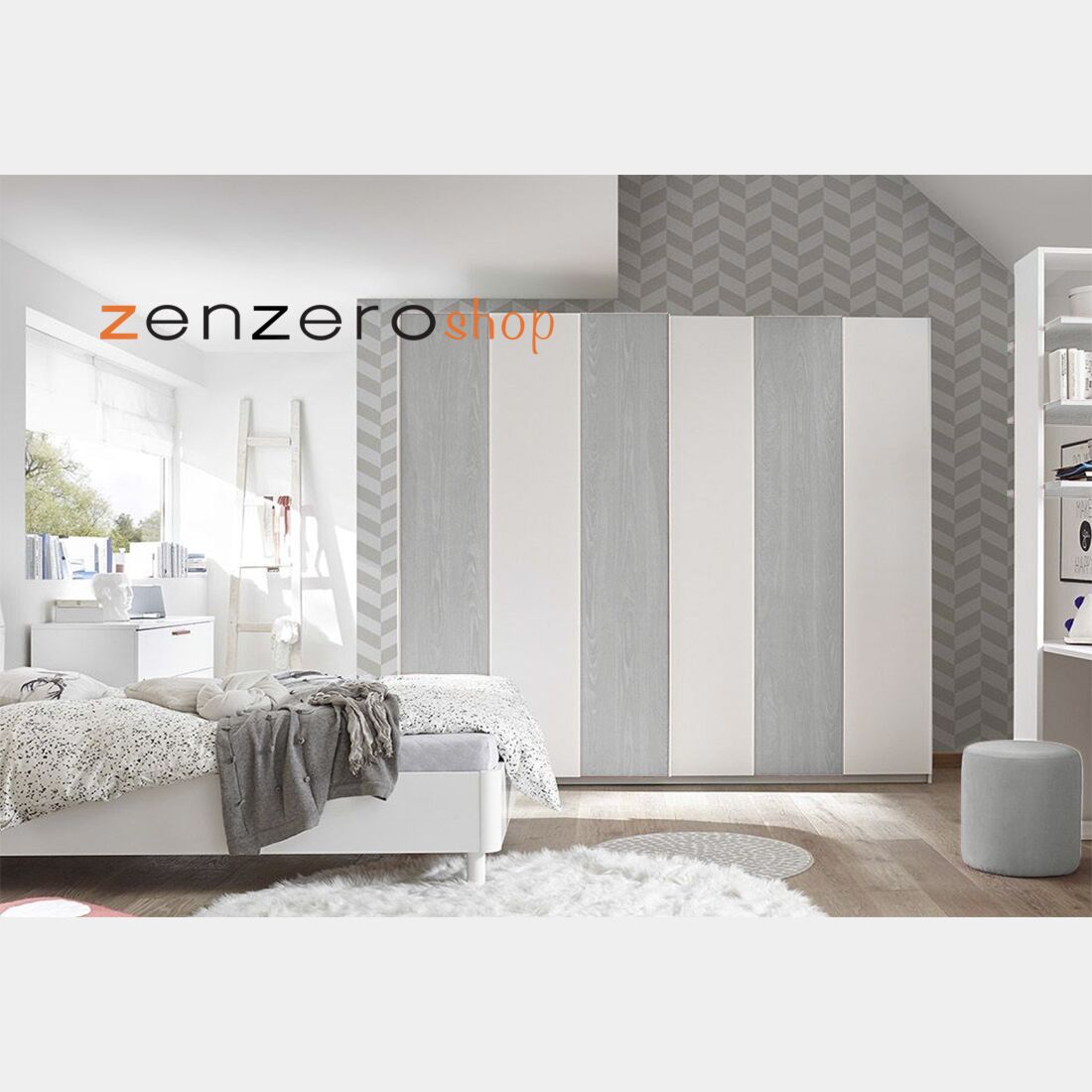 - Armadio Vertigo a 2 ante scorrevoli in colore bianco opaco e grigio L.243 H.230 P.57 cm