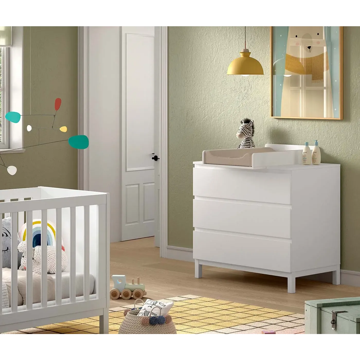 Semplifica e migliora la cura quotidiana del tuo bambino l'optional del pratico fasciatoio a incastro, il quale si adatta perfettamente alla cassettiera e offre un luogo sicuro per cambiare e prendersi cura del tuo bambino, grazie ai bordi rialzati e alla costruzione robusta.