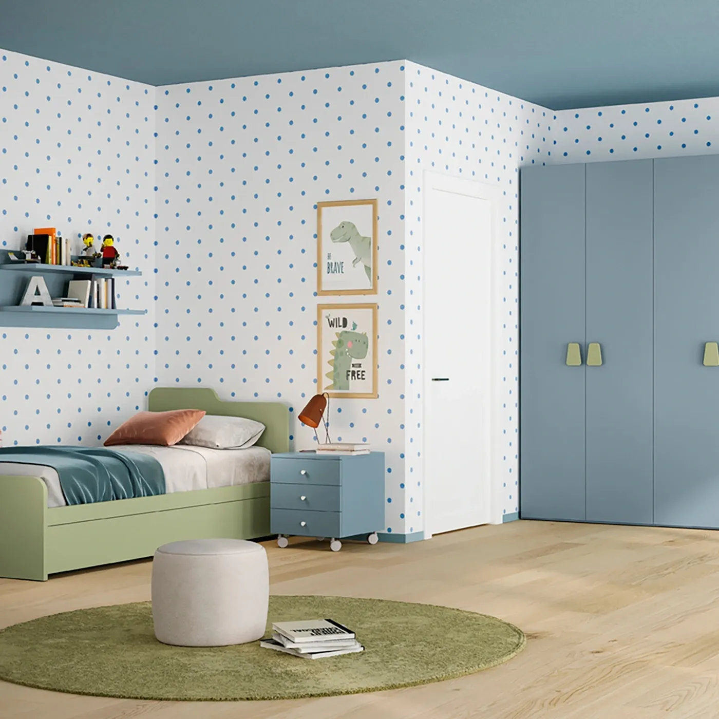 Oltre al letto, è presente un armadio componibile, costituito da 2 moduli da 90 cm l'uno e 4 ante in totale. All'interno sono presenti nel complesso 2 ripiani e 4 tubi appendiabiti, senza però precludere la possibilità di aggiungerne altri o personalizzare gli interni in maniera differenti con gli optional sotto proposti.