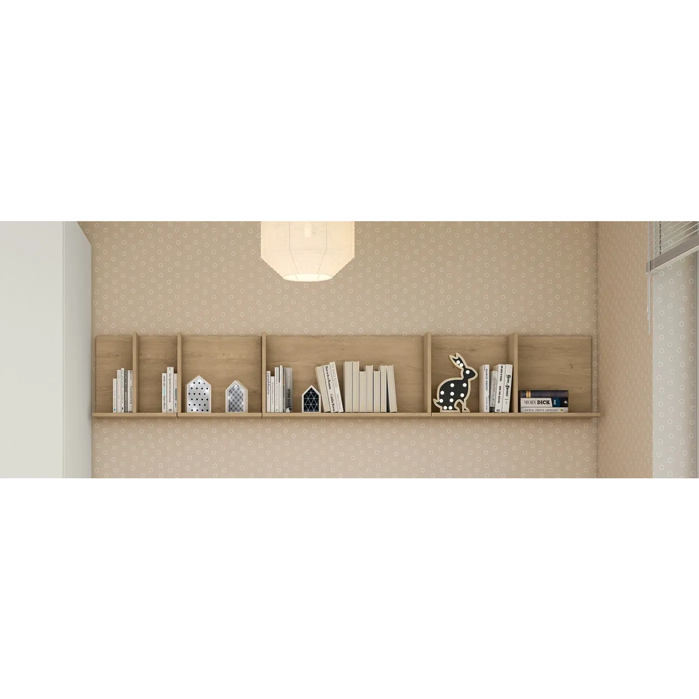 La camera si presenta nelle finiture Royal oak, Oliva e Rovere bianco, le quali possono essere sostituite a piacimento con le altre disponibili.