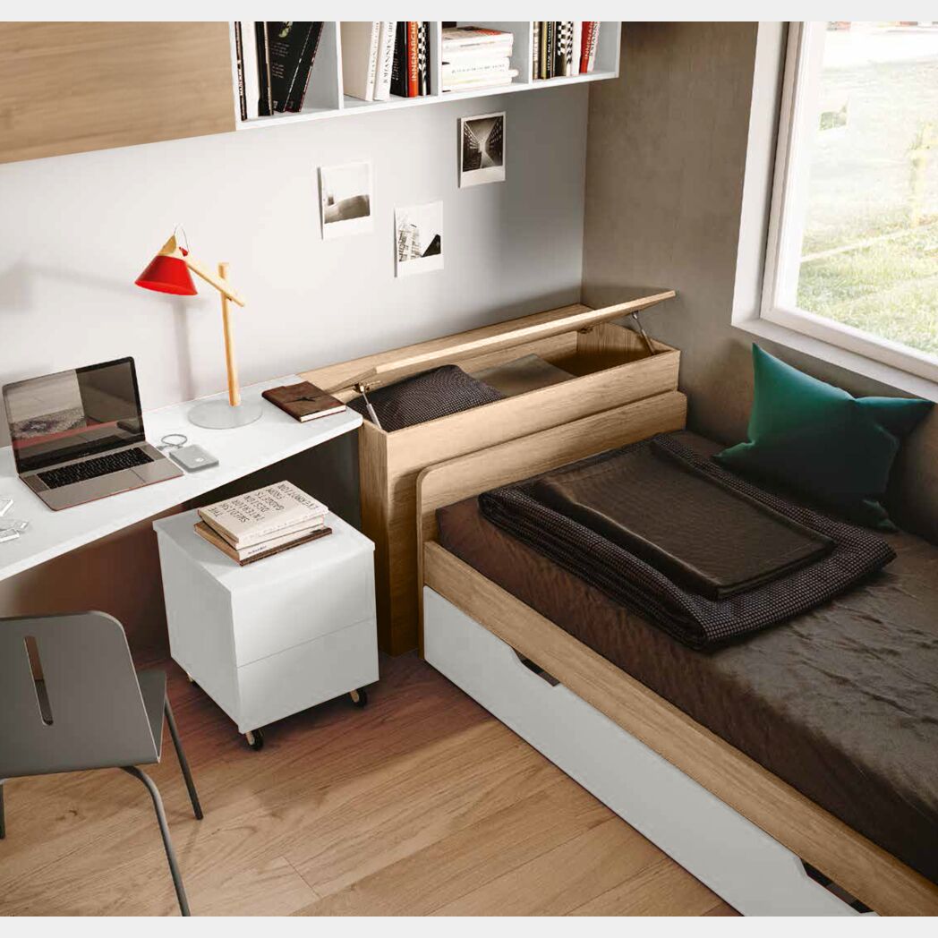 Il letto diventa una perfetta soluzione per ospitare gli amici: dotato infatti di un secondo letto estraibile all'occasione offre tutta la comodità necessaria. Al letto è stato abbinato un contenitore per offrire un ulteriore spazio di appoggio per giochi, cuscini e coperte.