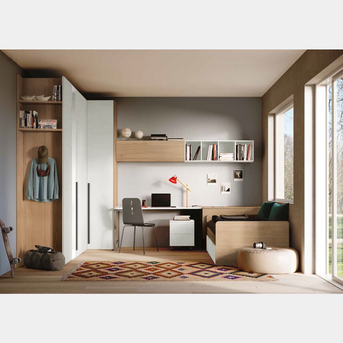 Cameretta per ragazzo in finitura Noce biondo e Bianco opaco