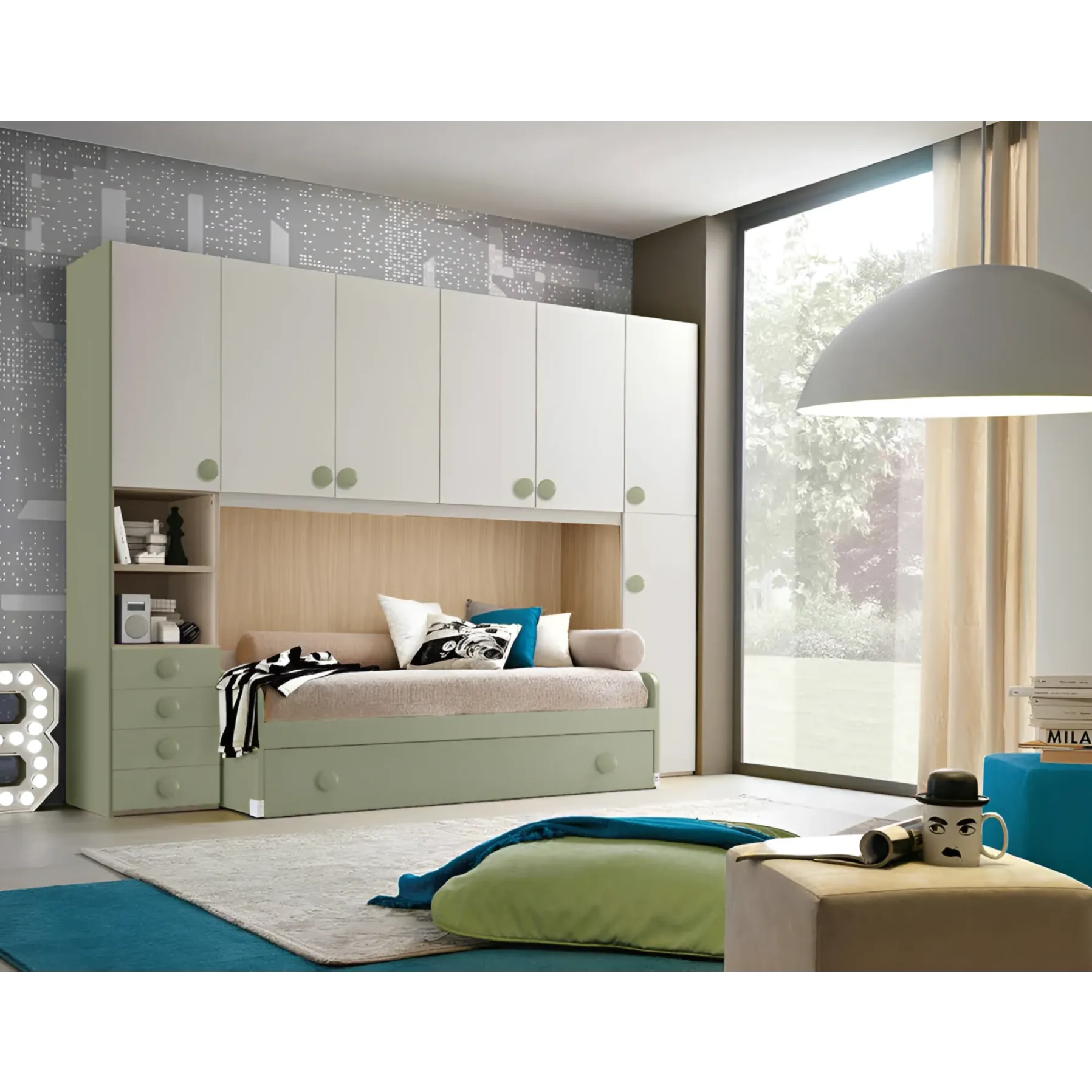 Cameretta ponte H.226, finitura Rovere ambra, Salvia e Nebbia