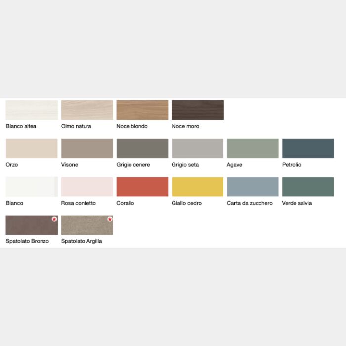 Le finiture proposte per la cameretta entrano in contrasto per assicurare un arredo giovanile e moderno: Corallo e Grigio seta si mescolano creando luce e rendendo la stanza accogliente. La struttura è in Bianco altea.