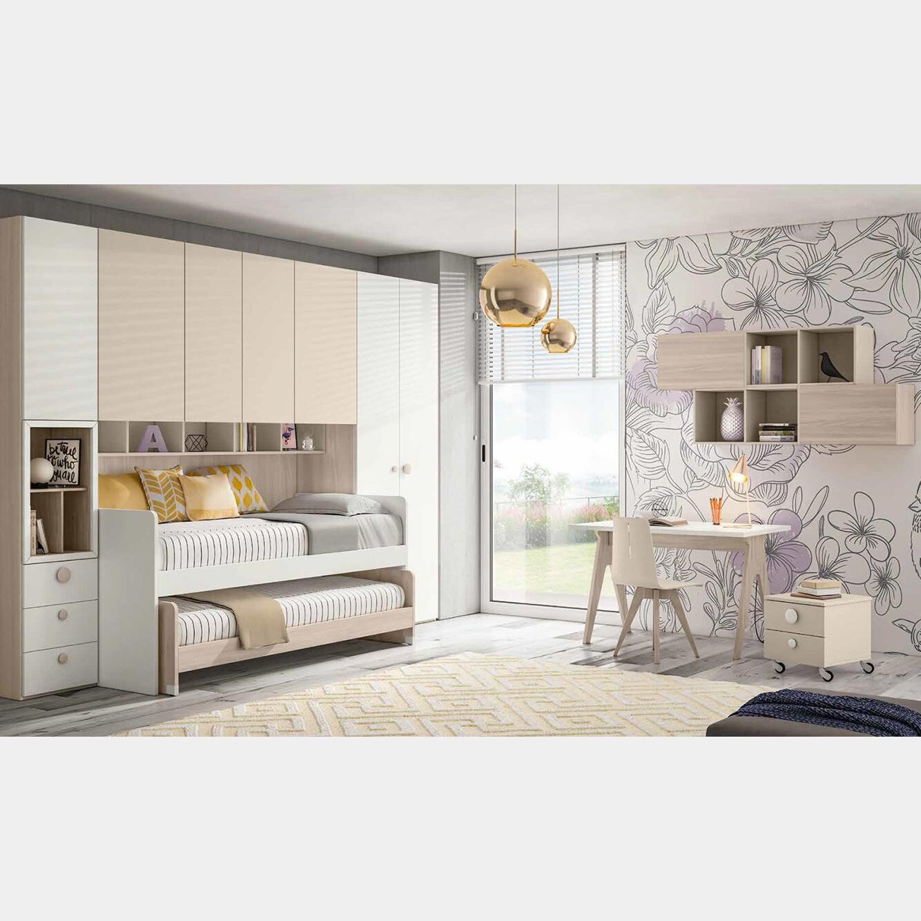 La camera è composta da un armadio a ponte e un letto multifunzionale estraibile.