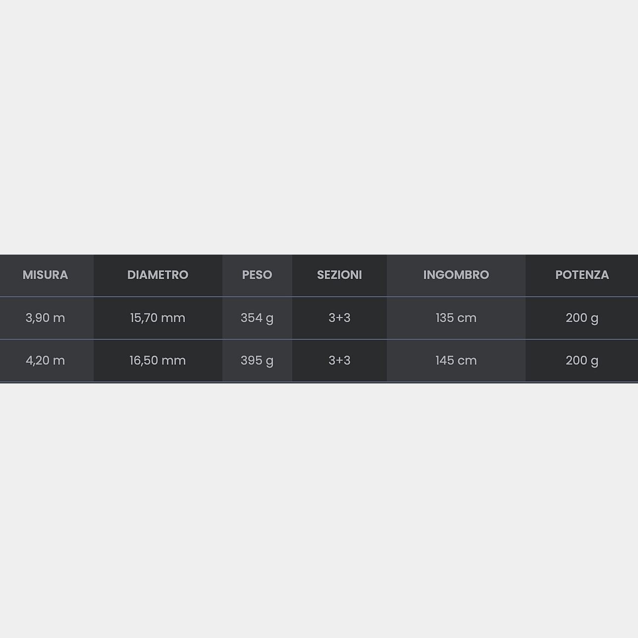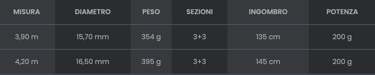 È costruita impiegando le più tenaci fibre di carbonio ed è in grado di gestire zavorre fino a 200 grammi, risultando comunque molto piacevole all'utilizzo.