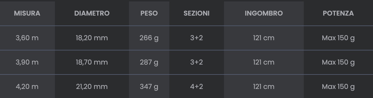 Canna Sylan Tubertini, 3,60 mt, 3,90 mt, 4,20 mt, potenza 150 gr
