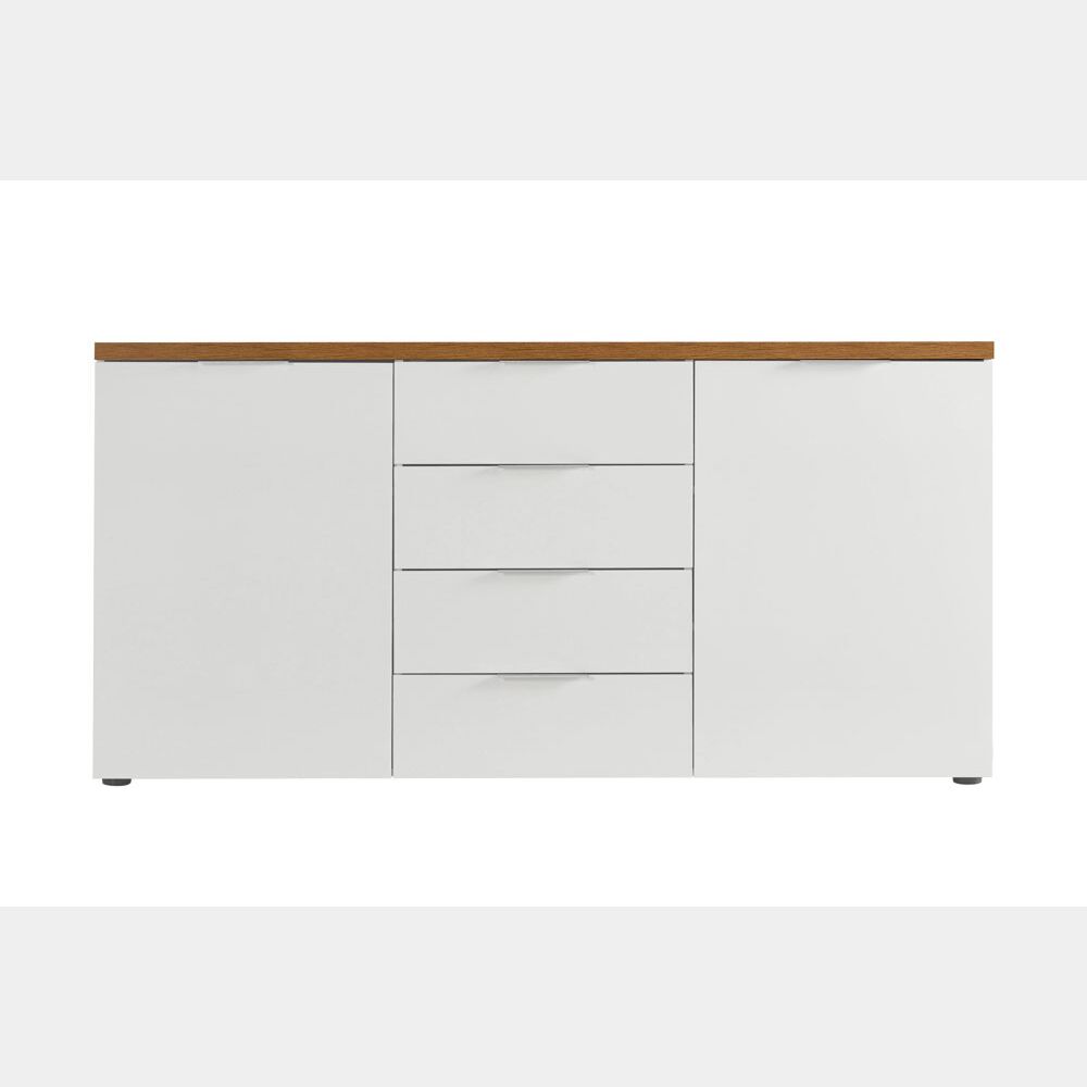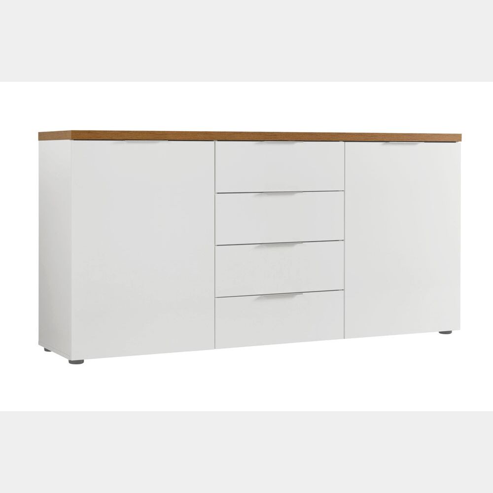 Capiente Madia 2 ante e 4 cassetti finitura Bianco lucido e Castagno, Made in Italy