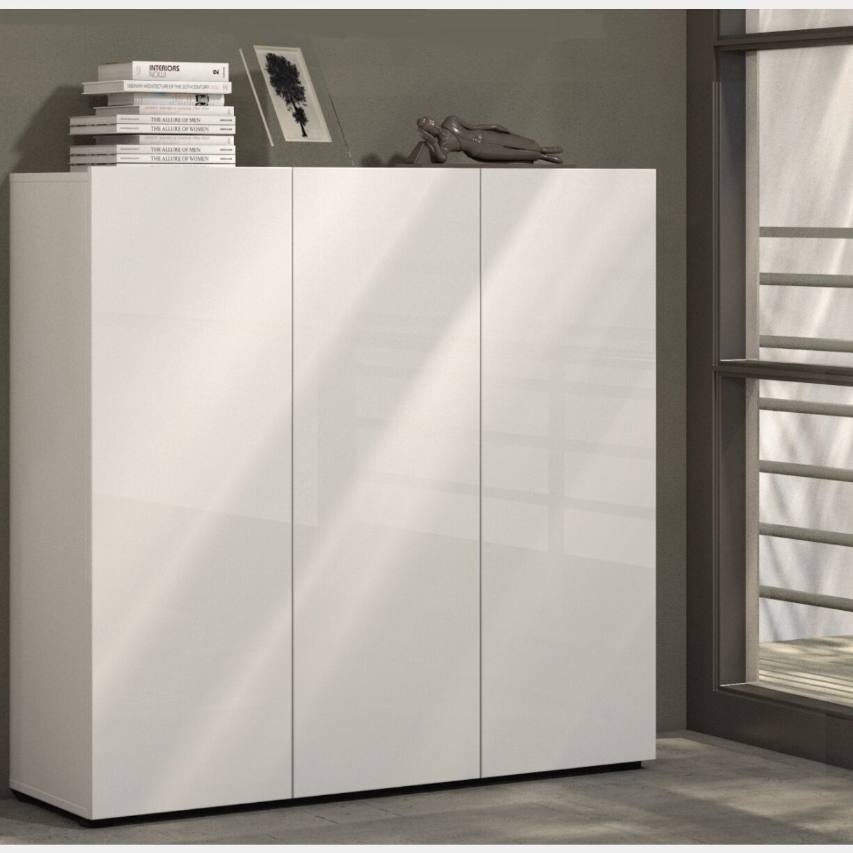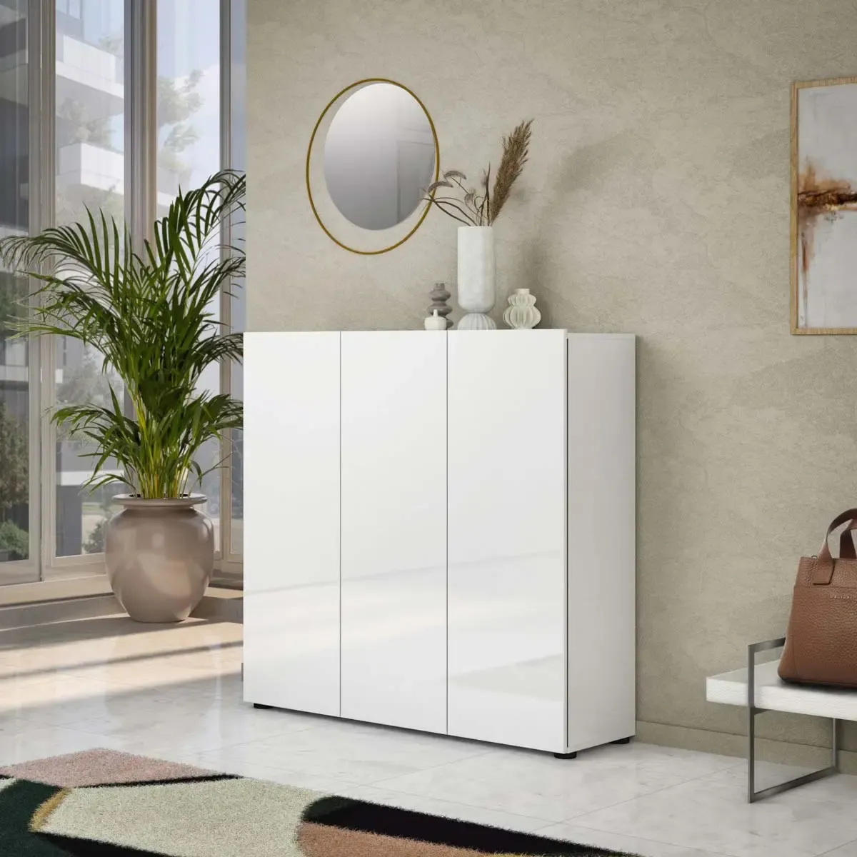 Capiente Scarpiera 3 ante finitura Bianca Lucido, Made in Italy