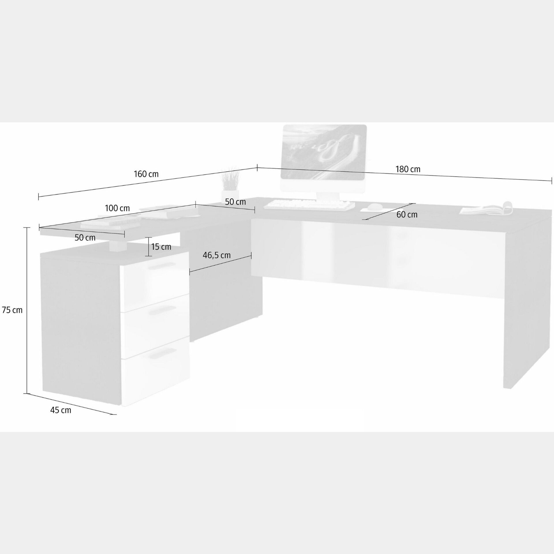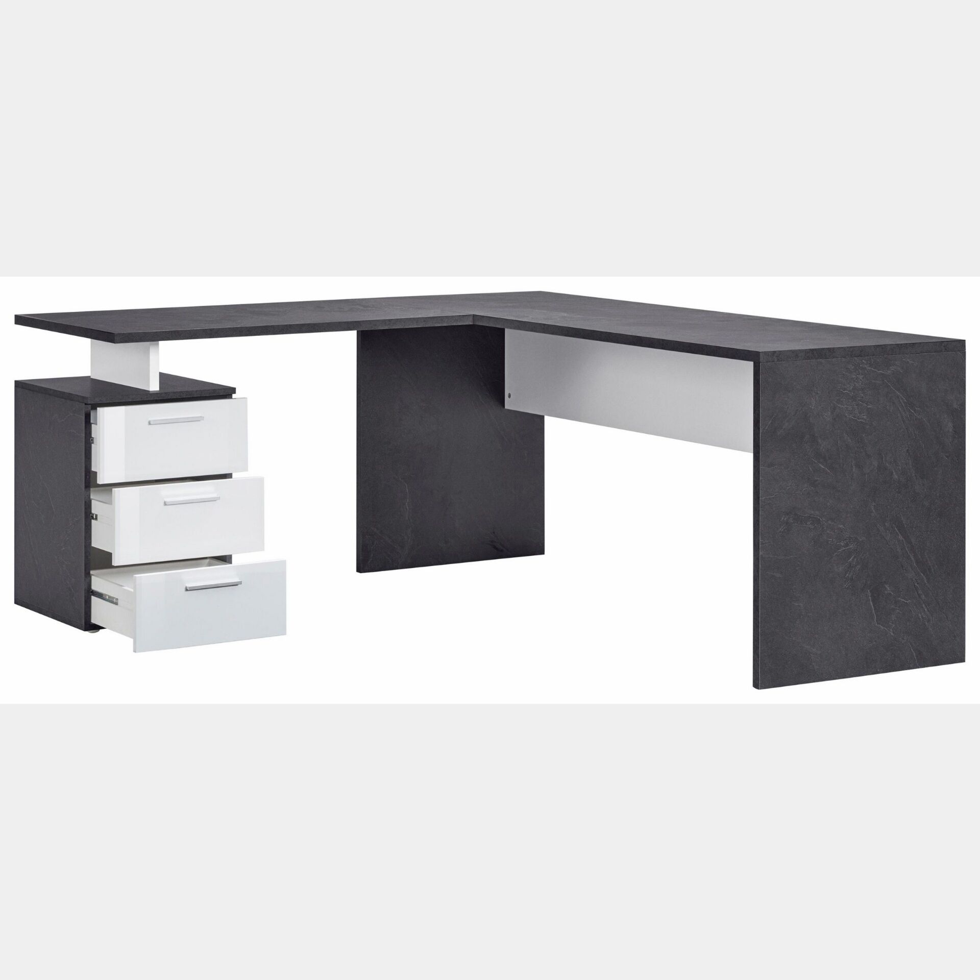 Capiente Scrivania moderna ad angolo con cassettiera in finitura Antracite e Bianco lucido