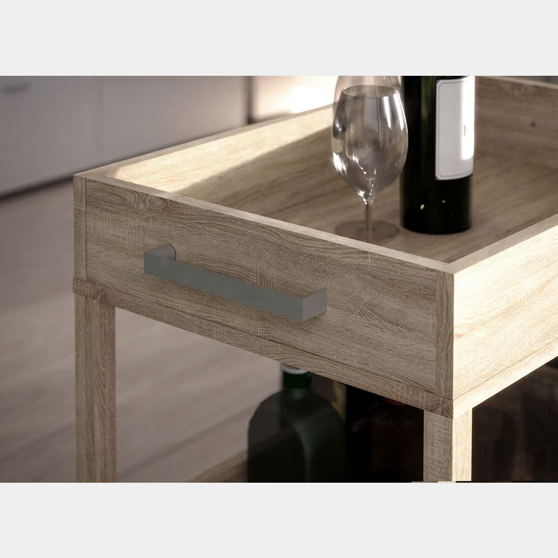 Il mobiletto da bar è un'ottima soluzione d'arredo per completare il soggiorno. La finitura in Rovere sonoma dona calore all'ambiente rendonolo accogliente. Le mille sfumature del rovere assicurano un mobile unico e originale, capace di sorprendere e stupire.