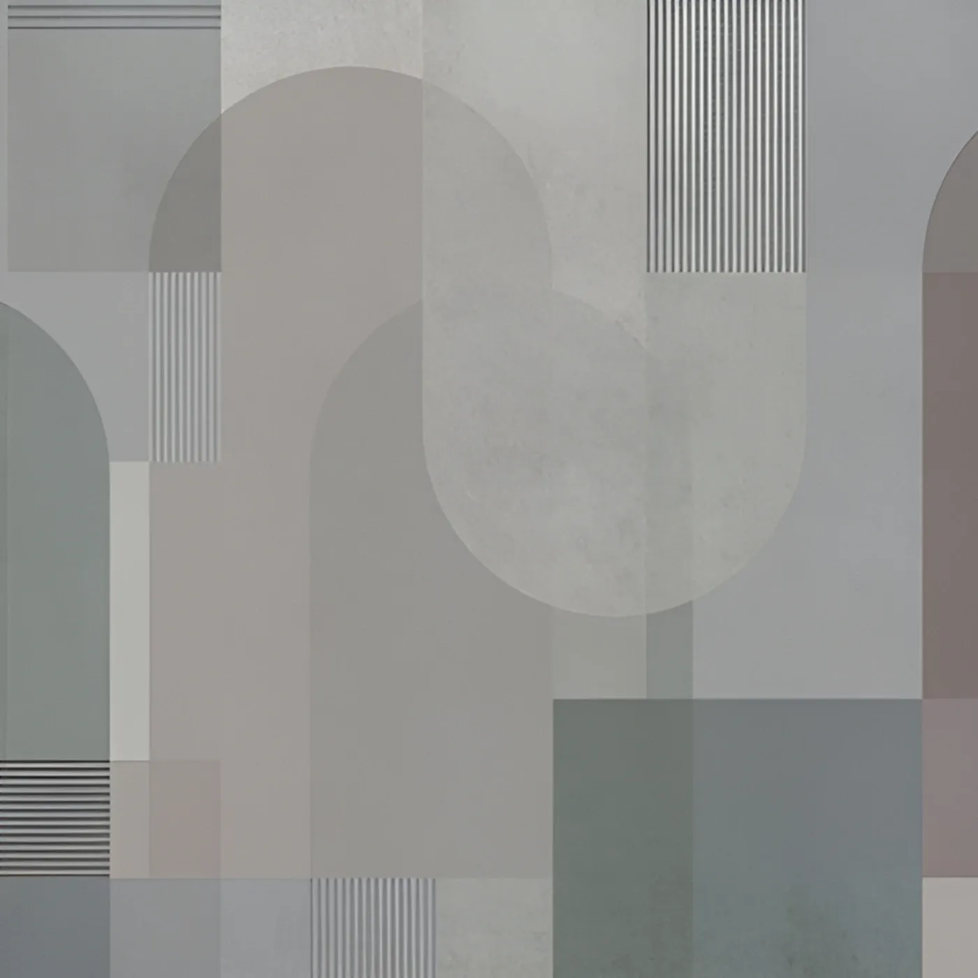 La carta da parati presenta un design geometrico astratto e moderno con una palette di colori neutra e sofisticata. Scopri tutta le carte da parati!
