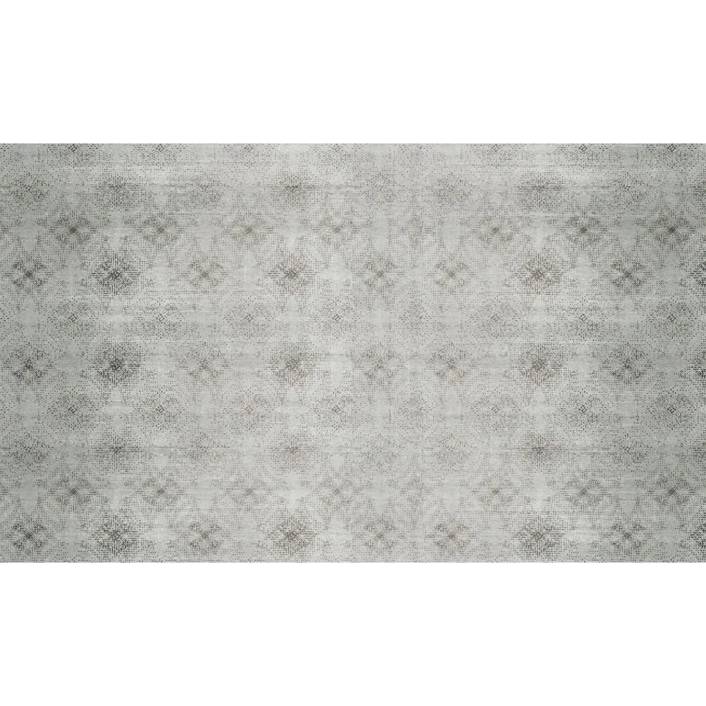 La palette di colori è molto neutra e tenue, con una base in un bianco sporco o grigio molto chiaro, e il motivo ripetuto in una tonalità di grigio tortora chiaro o beige rosato sbiadito. Il contrasto tra sfondo e motivo è minimo, contribuendo a un aspetto morbido e discreto.