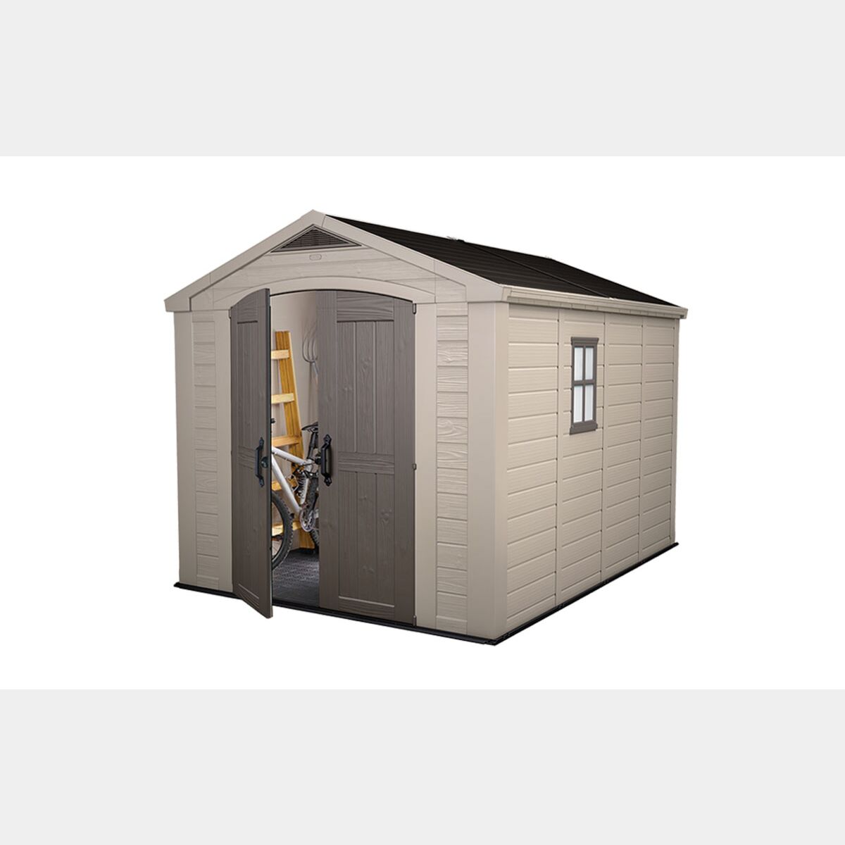 Betulla è una casetta spaziosa, pratica e durevole nel tempo. Pareti con superficie con finitura effetto legno, ampi spazi, due mensole, una finestra fissa, un lucernario e fori di ventilazione per favorire l'entrata della luce naturale e un'ottima aerazione. Il pavimento è ideale anche per i carichi più pesanti e l'entrata con due porte favorisce l'accesso alla casetta. La casetta comprende anche due mensole per una migliore distribuzione degli spazi.