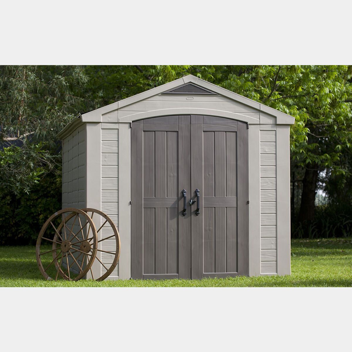 La casetta è dotata di una struttura con pareti a doppio strato e rinforzi interni in metallo. Non richiedono praticamente alcuna manutenzione e sono resistenti ai raggi UV e alle intemperie.