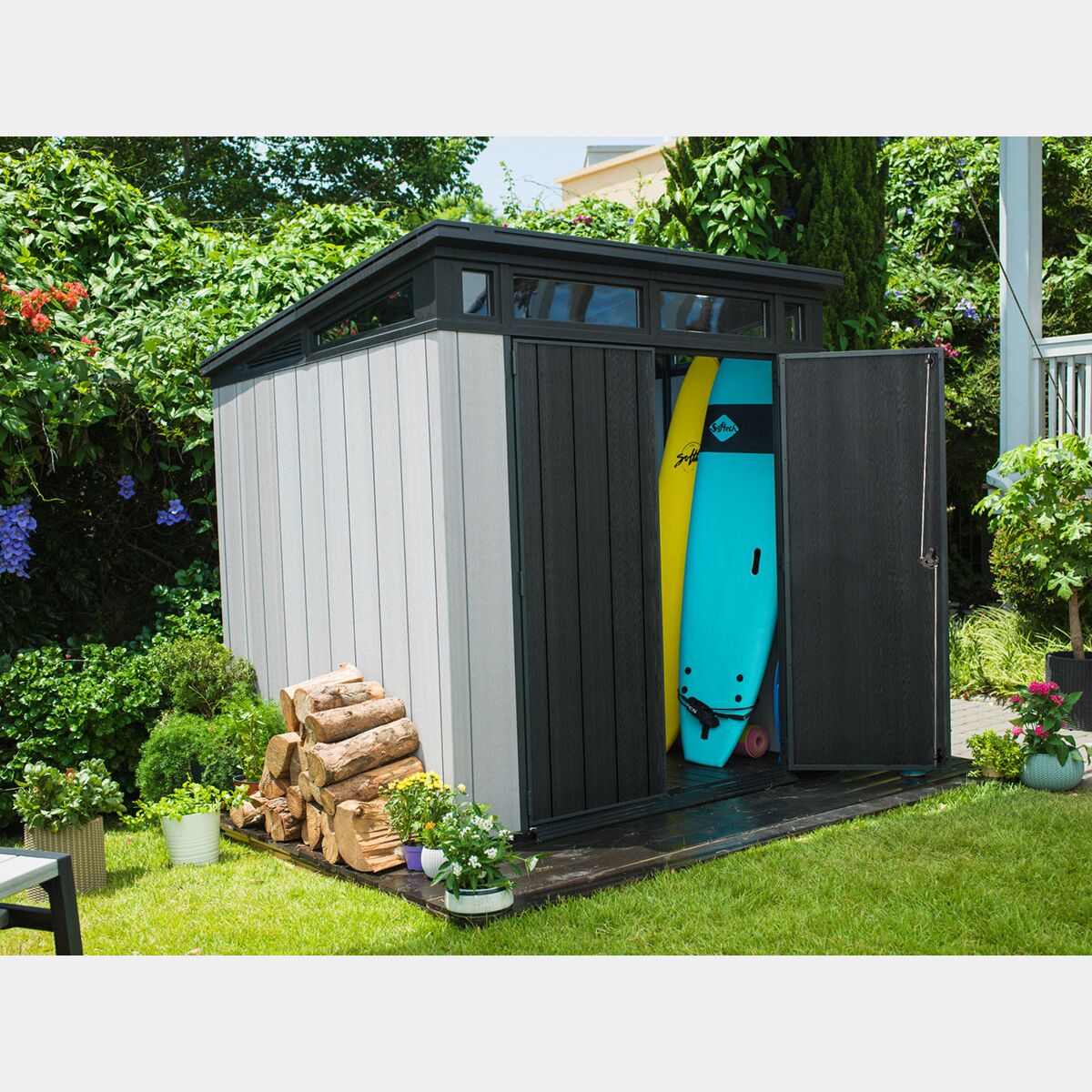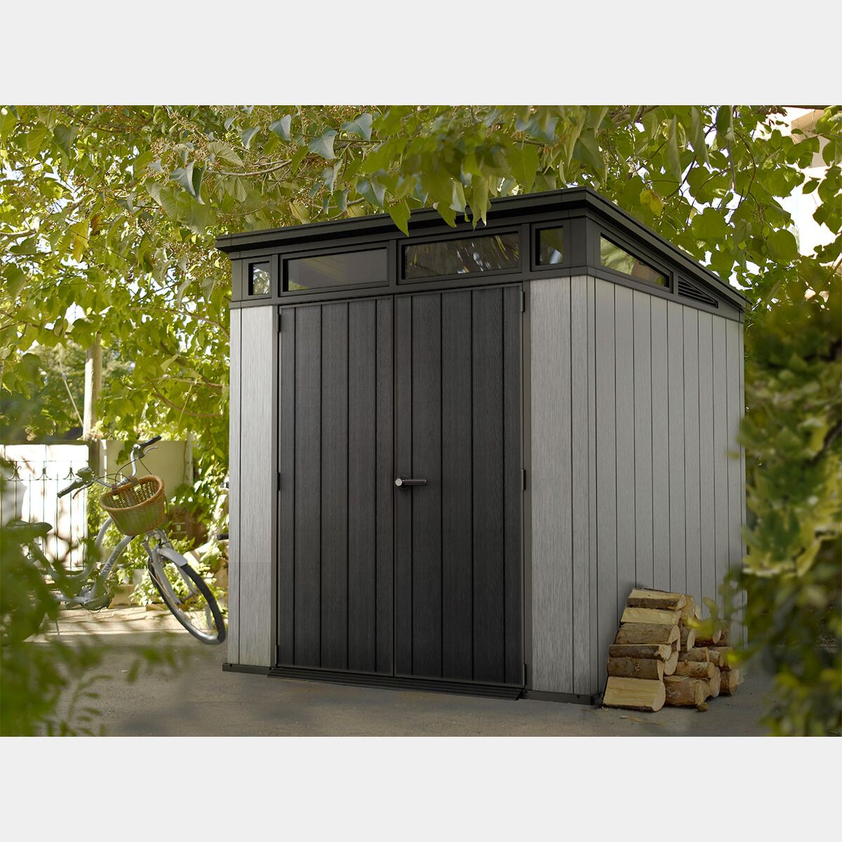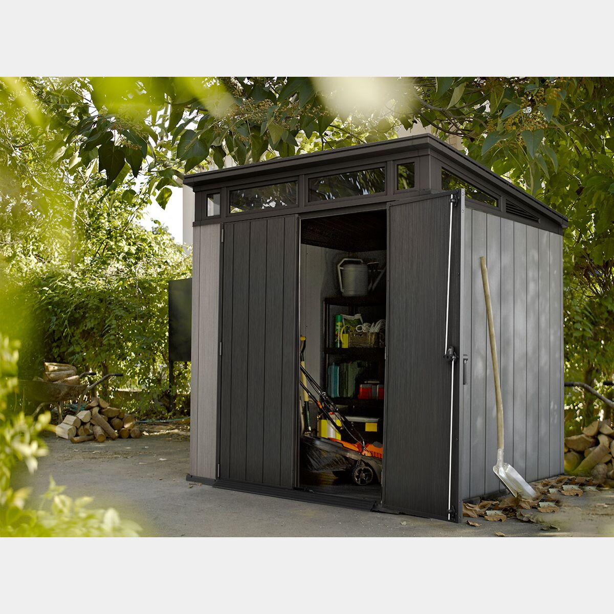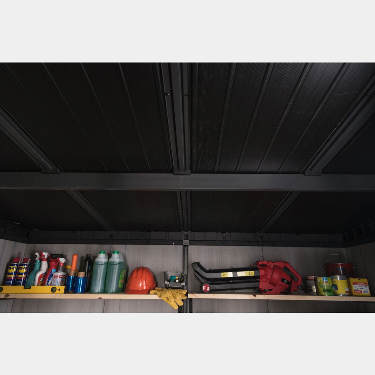 La casetta è dotata di una struttura con pareti a doppi strato e rinforzi interni in acciaio. Non richiede praticamente alcuna manuntenzione e sono resistenti ai raggi UV e alle intemperie.