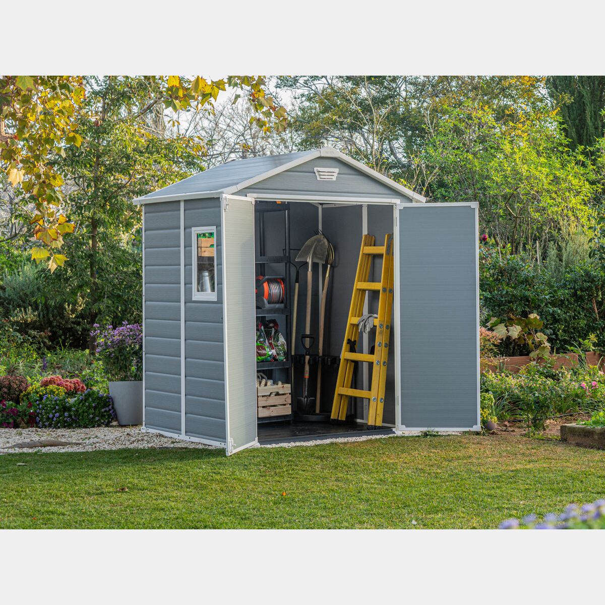 Mantieni pulito e in ordine il tuo giardino con Magnolia, casetta di medie dimensioni dotata di una porta a due ante per un accesso facilitato anche agli oggetti di grandi dimensioni, La casetta disponibile in due diverse colorazioni.