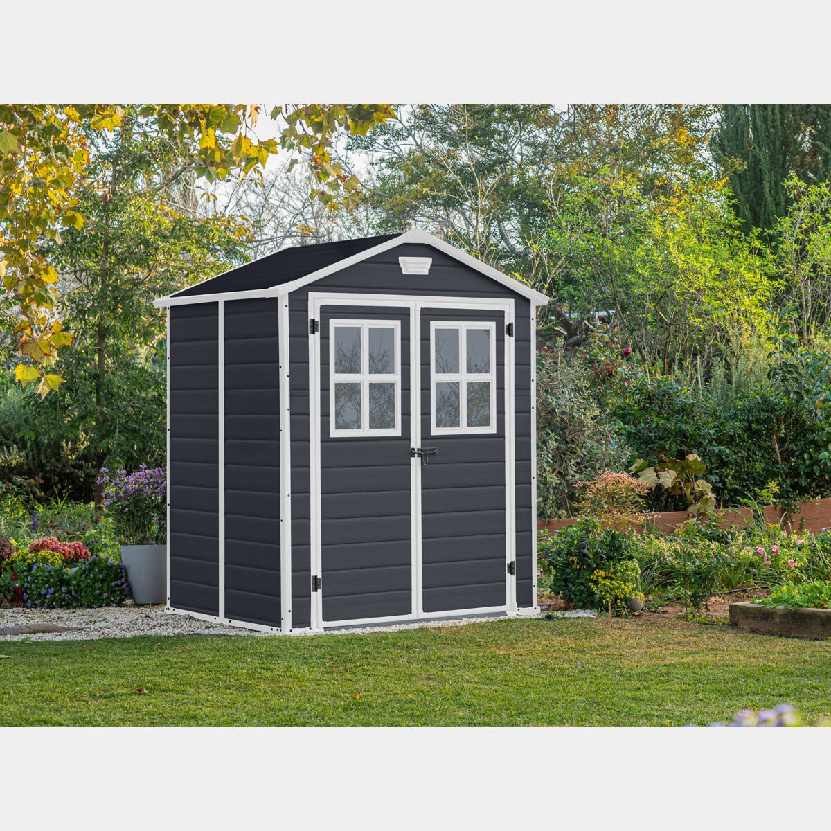 Mantieni pulito e in ordine il tuo giardino con Magnolia, casetta di medie dimensioni dotata di una porta a due ante per un accesso facilitato anche agli oggetti di grandi dimensioni, La casetta disponibile in due diverse colorazioni.