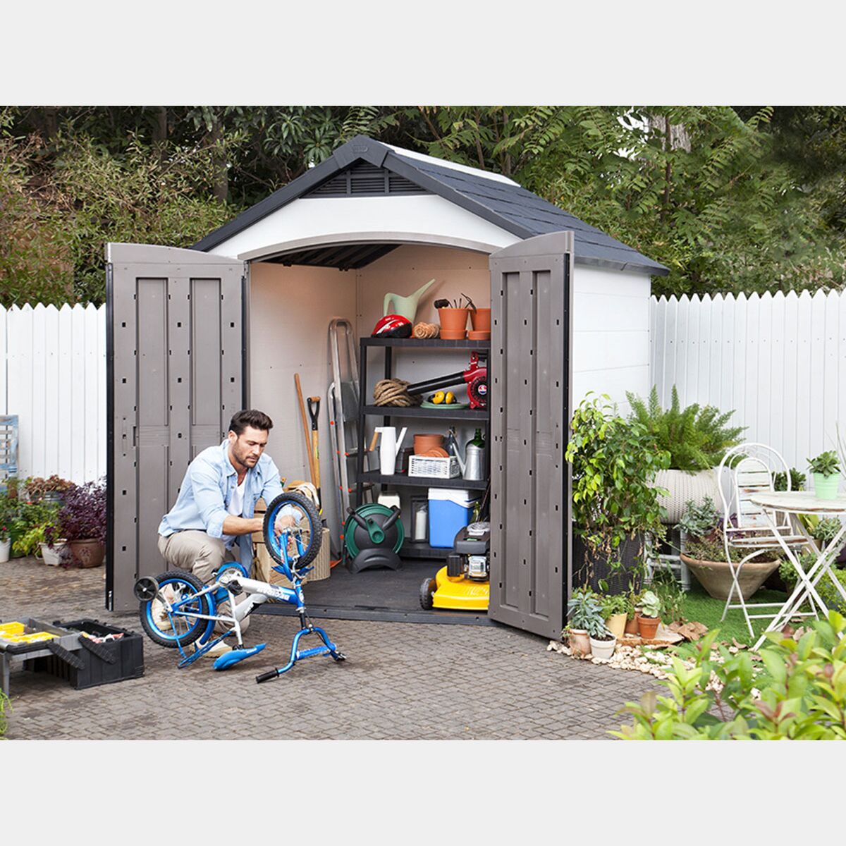Sei alla ricerca di una casetta durevole che combini un design classico e funzionalità? Viola 757 è la scelta perfetta per te. È per resistere agli eventi atmosferici più avversi. Struttura realizzata con pannelli a doppia parete e con rinforzi in metallo per fornire una stabilità e una resistenza superiore. Resiste ai carichi neve fino a 100 Kg/m². Il pavimento rialzato protegge il contenuto da fango e acqua. L'ampio lucernario che si sviluppa lungo tutto il colmo del tetto fornisce un'illuminazione naturale, mentre i fori di ventilazione forniscono un'ampia aerazione. Viola 757 è facile da assemblare usando gli attrezzi più comuni ed è dotata di una chiusura lucchettabile per una sicurezza aggiuntiva. Puoi contare su questa casetta per molti anni a venire, senza doverti preoccupare della manutenzione.