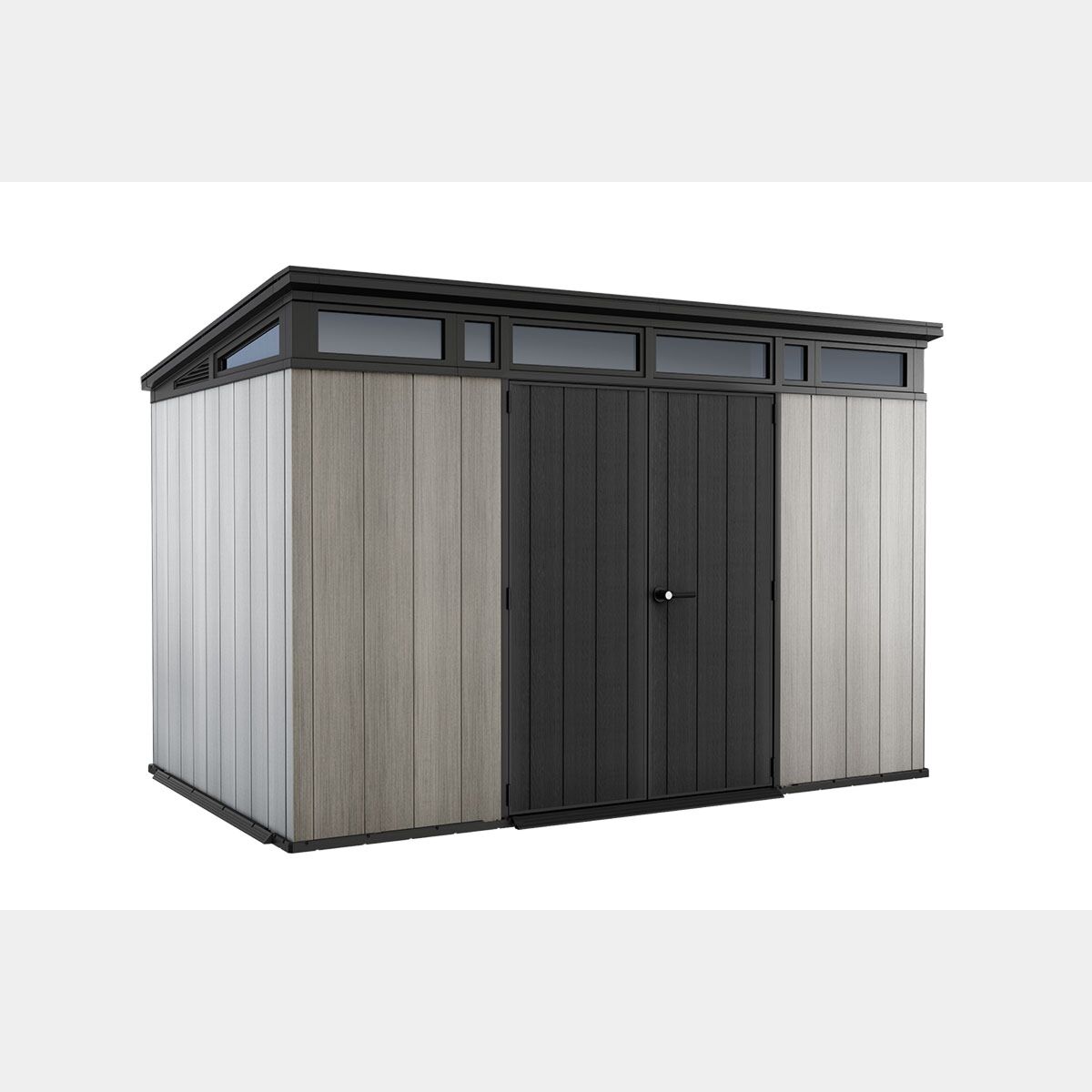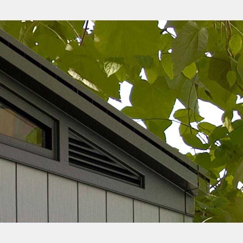 La casetta comprende anche una porta a due ante lucchettabile, finestre su 3 lati e un pavimento rialzato che protegge il contenuto da fango e pioggia. Non richiede praticamente alcuna manuntenzione.