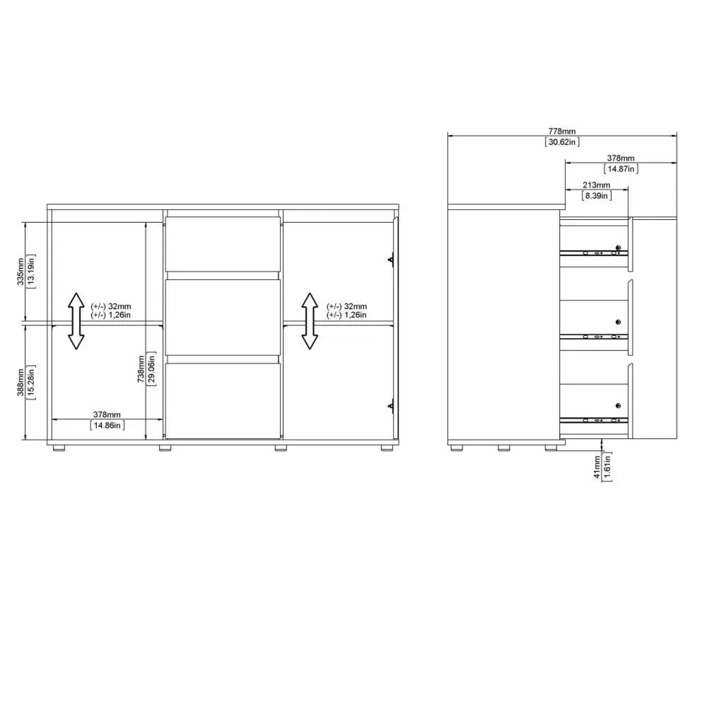 Cassettiera composta da tre comodi cassetti e da due ante in promozione. Al suo interno si trovano dei ripiani in cui è possibile inserire i propri oggetti.