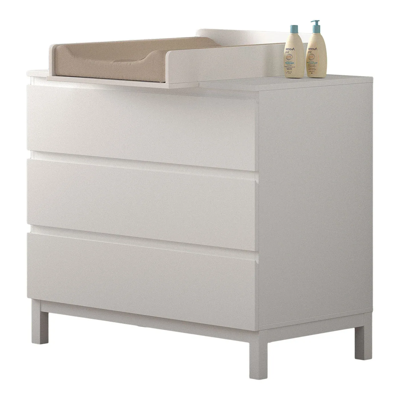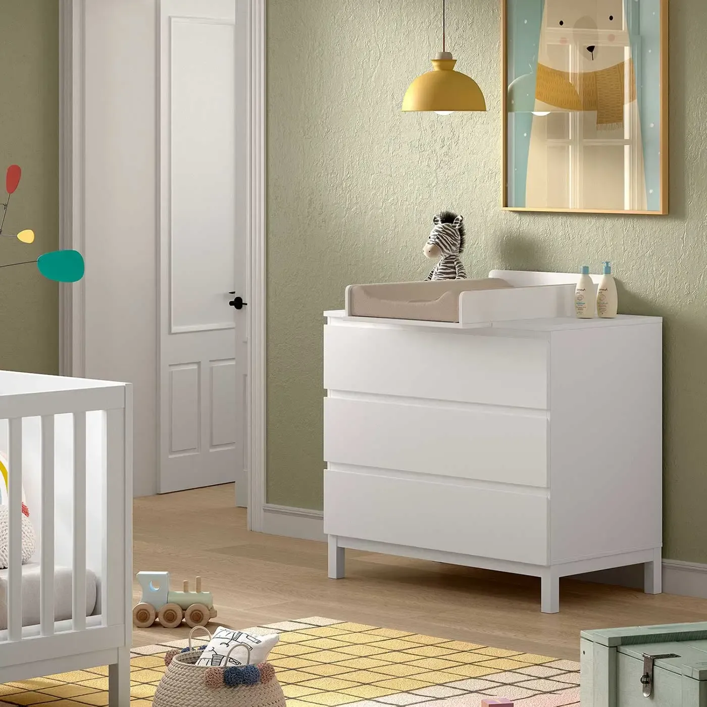 Questa cassettiera in legno di piano e MDF è progettata per chi apprezza la semplicità e la funzionalità senza compromettere lo stile. Essa dispone di ben 3 cassetti a chiusura ammortizzata molto spaziosi, offre ampio spazio di archiviazione per gli oggetti essenziali e anche un sistema antiribaltamento. Semplifica e migliora la cura quotidiana del tuo bambino con l'accessorio aggiuntivo abbinato, ovvero un pratico fasciatoio che si adatta perfettamente alla cassettiera grazie all'incastro e offre un luogo sicuro per cambiare e prendersi cura del tuo bambino, grazie ai bordi rialzati e alla costruzione robusta.