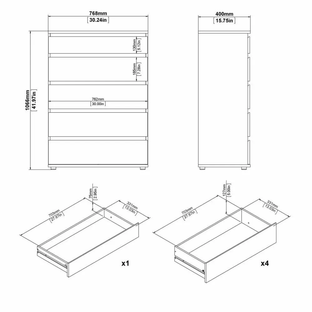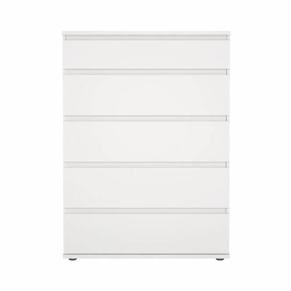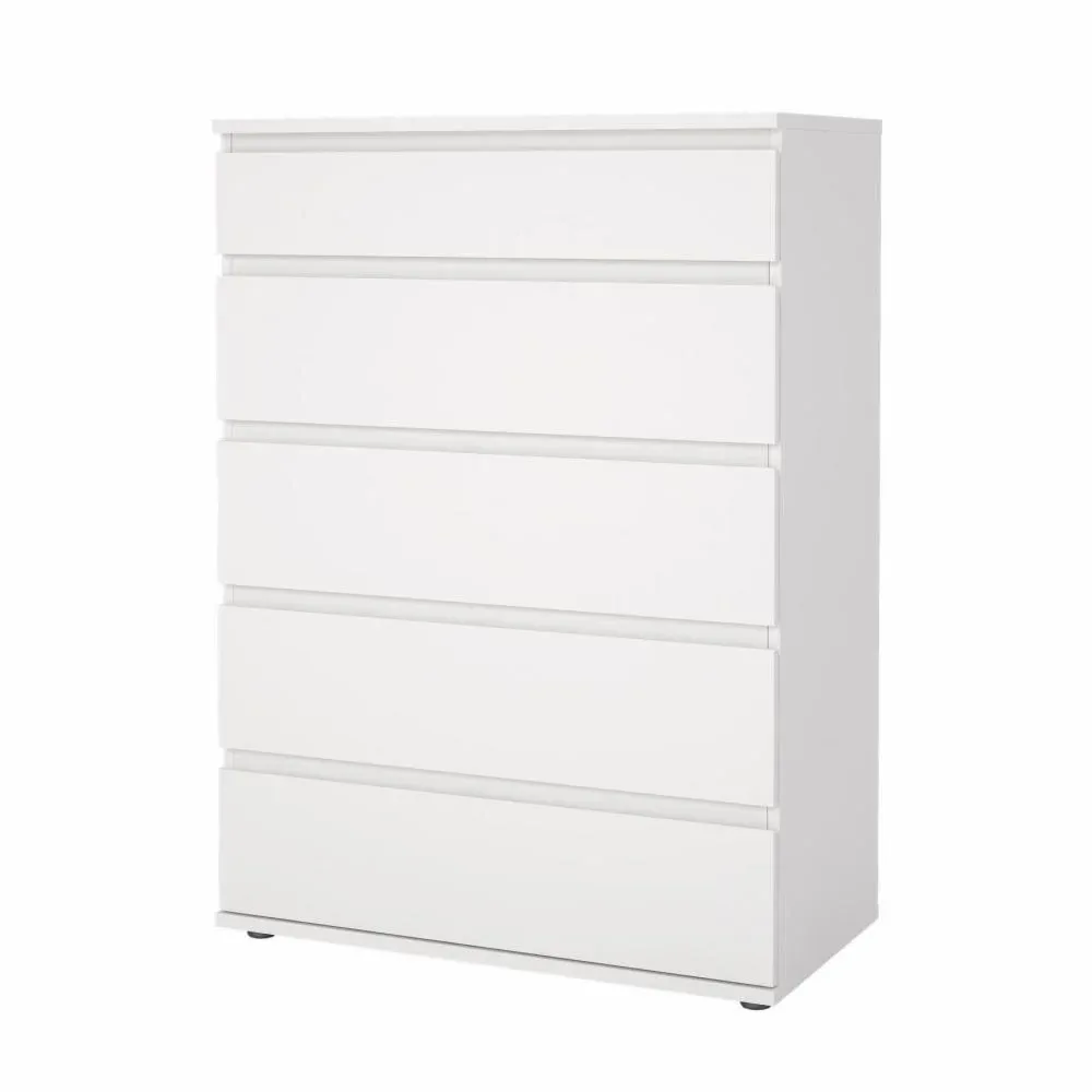 Bellissima cassettiera colore Bianco composta da cinque cassetti. La sua grafica così fine ed elegante permette di essere inserita o in una camera da letto o in una cameretta o in una zona living.