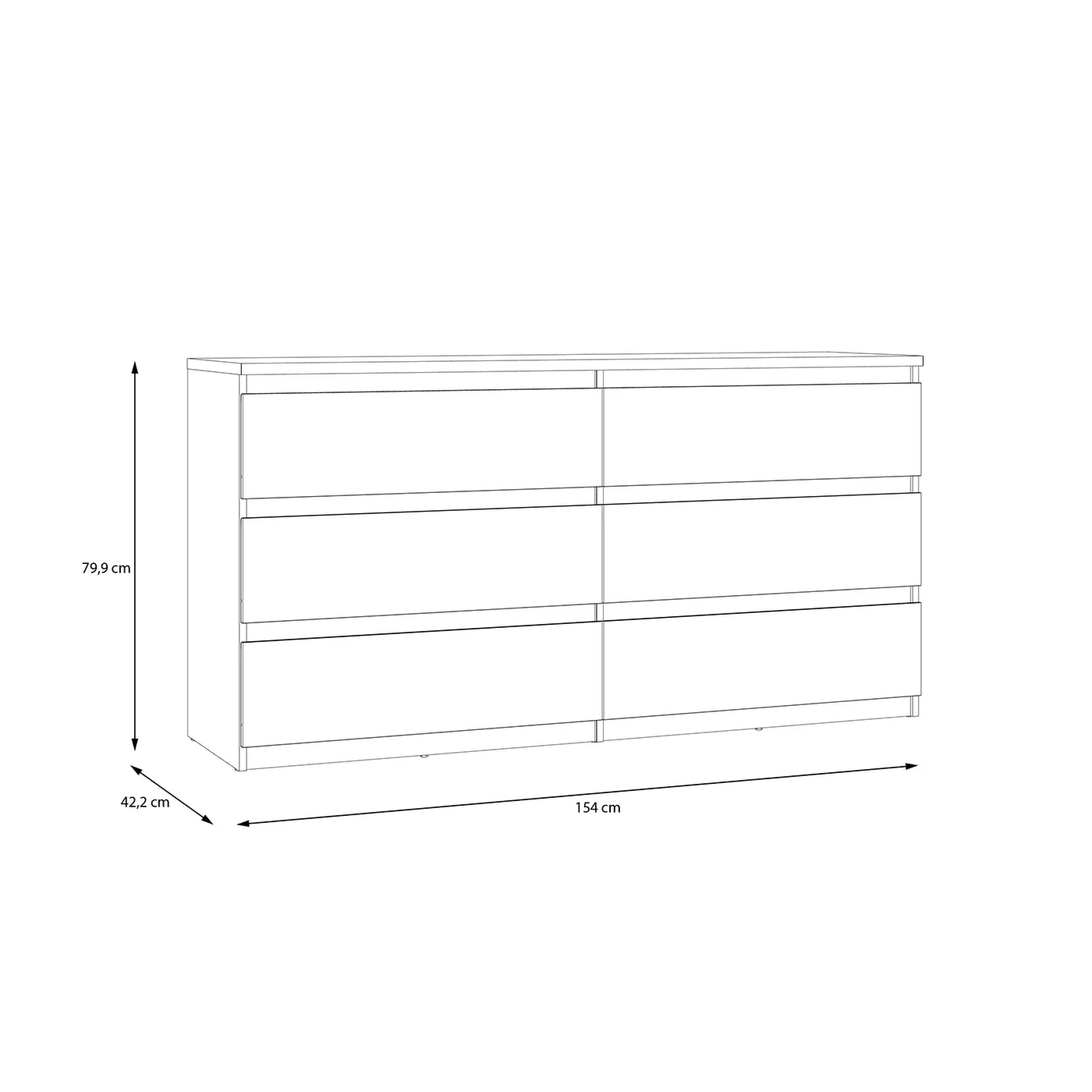 Cassettiera 6 cassetti, Bianco opaco, L.154 H.80