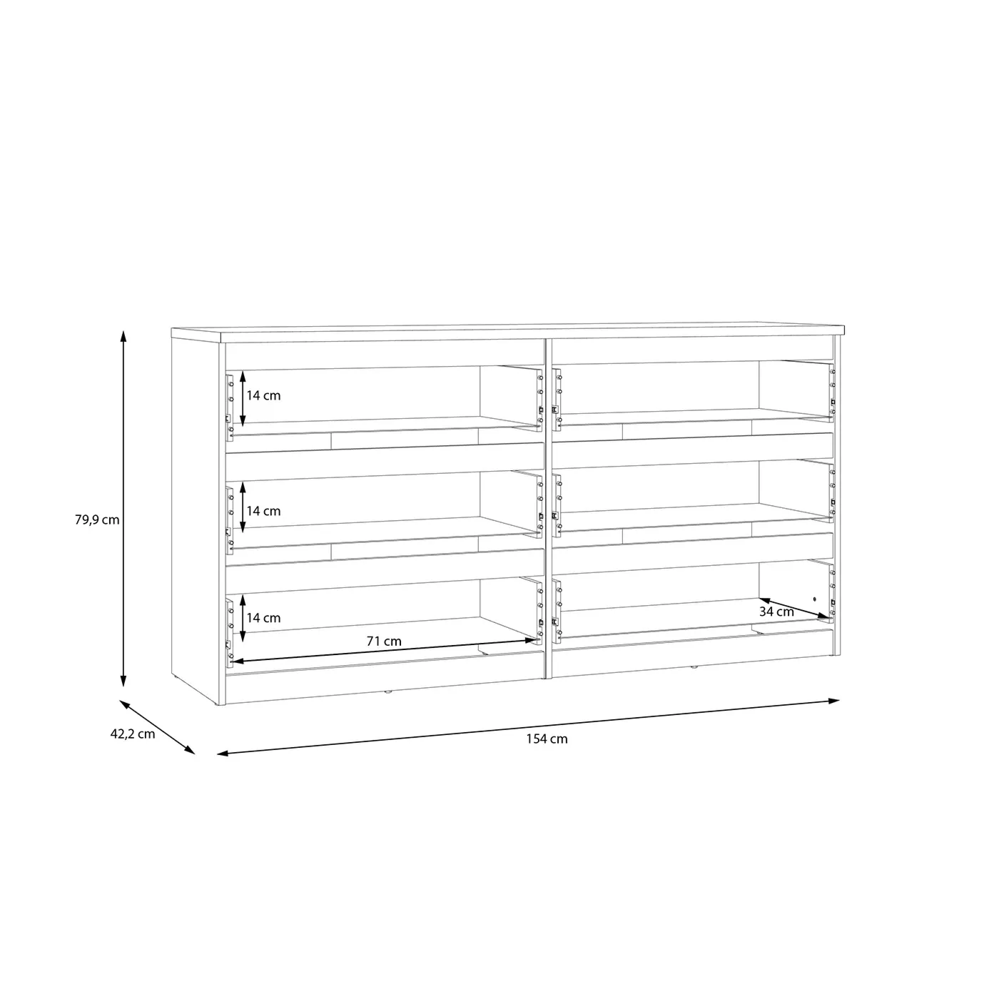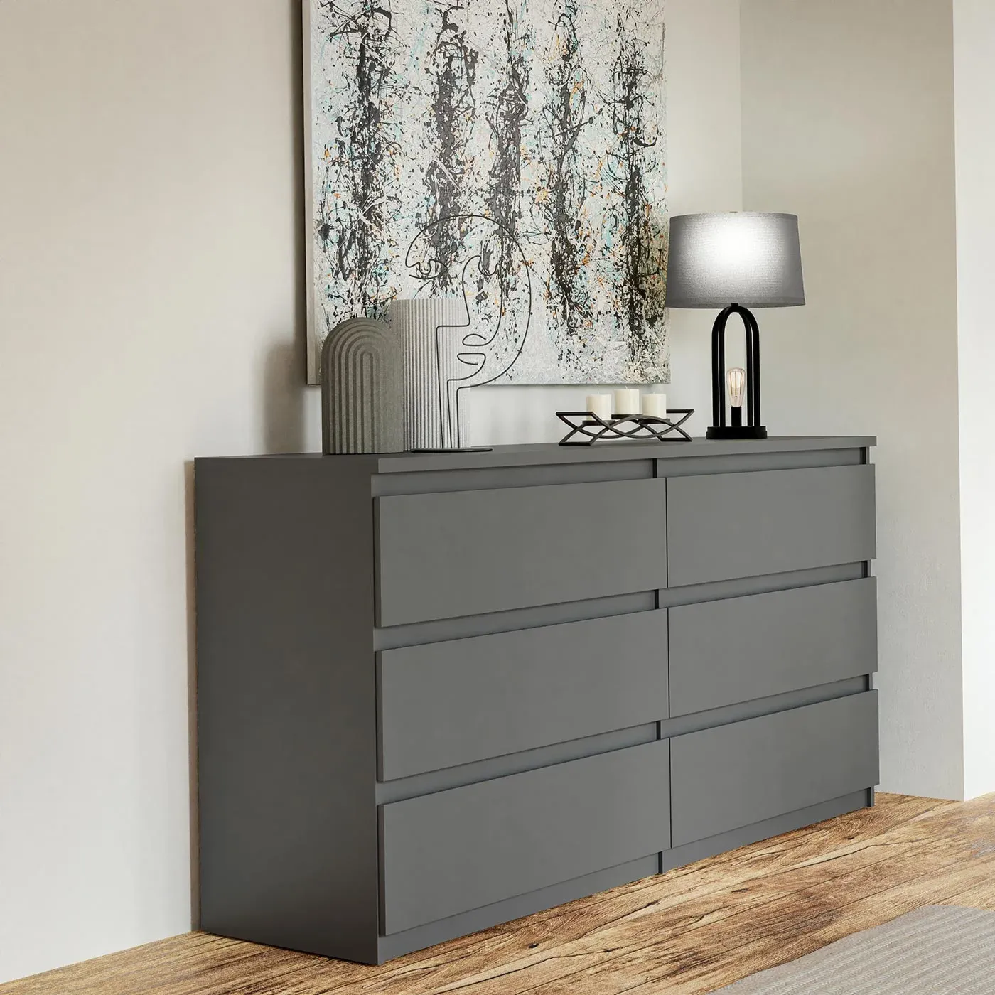 Cassettiera 6 cassetti, Grigio scuro, L.154 H.80