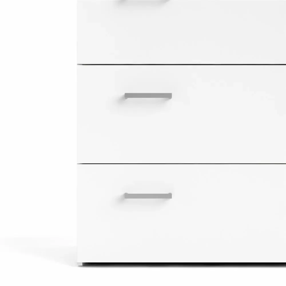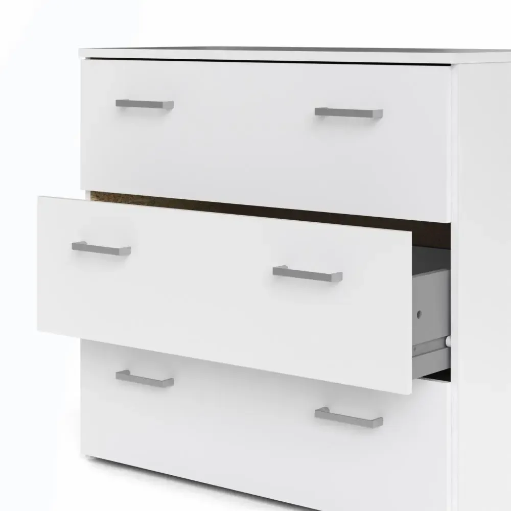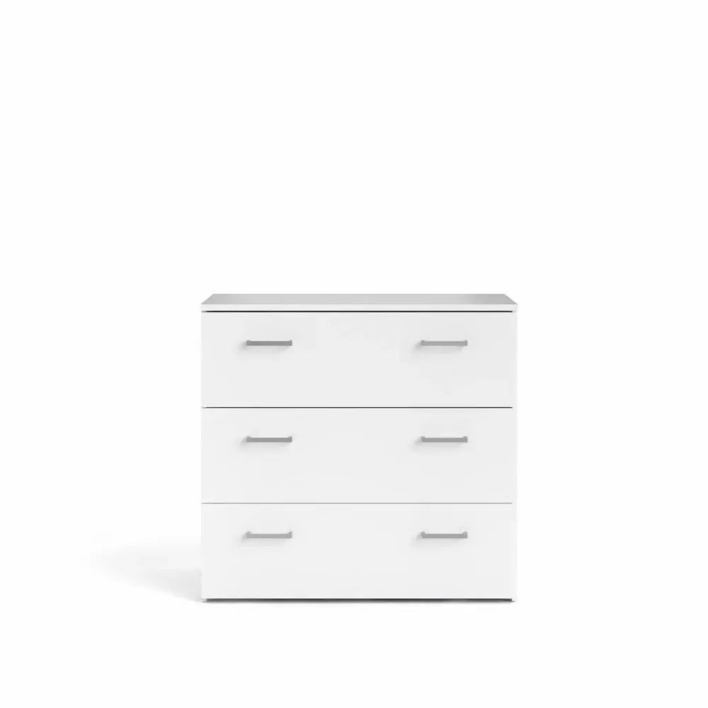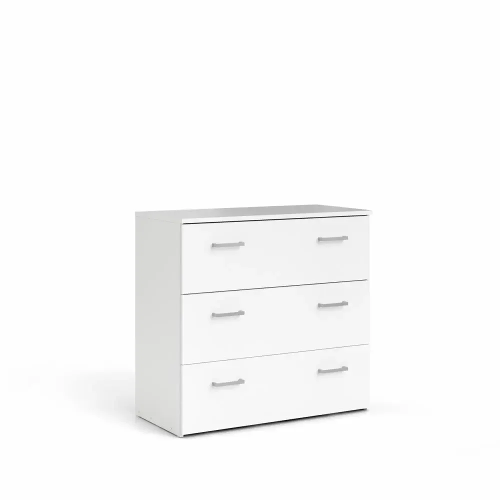 Cassettiera con tre cassetti color Bianco con sei maniglie. E' capiente per riporre i propri oggetti in ordine.