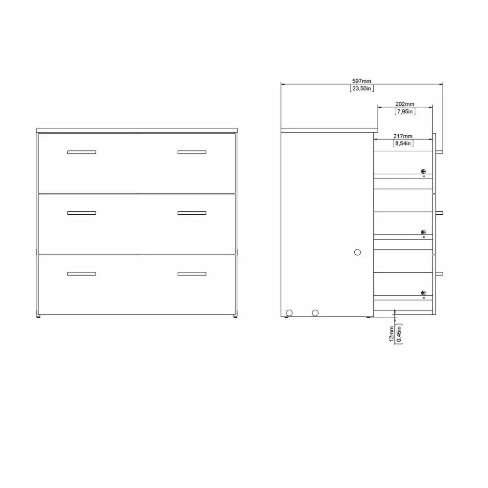 Cassettiera con tre cassetti color Bianco