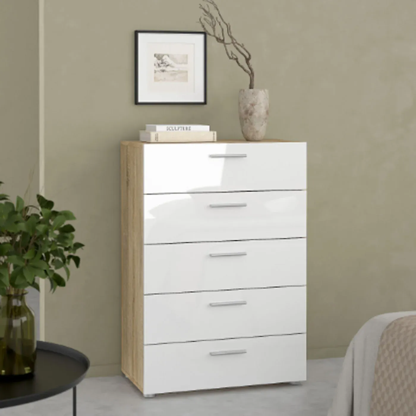 Cassettiera molto elegante colore Bianco lucido e Rovere oak
