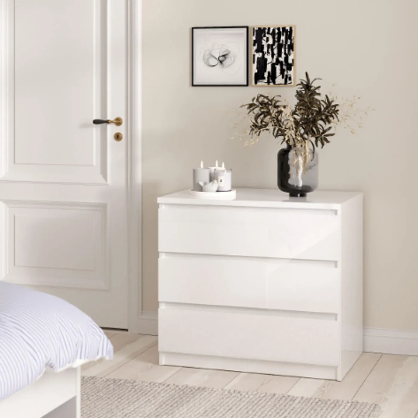 Cassettiera con tre cassetti Bianco lucido. E' disponibile anche in versone Rovere, Nero opaco, Calcestruzzo e bianco lucido