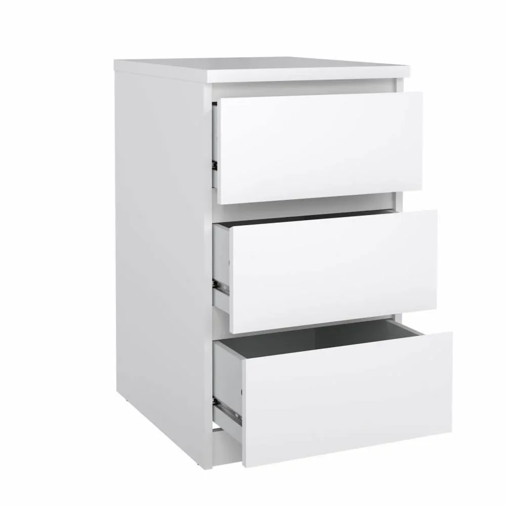La cassettiera è formata da tre cassetti in cui si possono riporre i propri oggetti composti a loro volta da guide lisce in acciaio con cuscinetti. I cassetti si presentano senza maniglia, il loro design elegante e semplice assicurano una sensazione di ordine e di pulito. La cassettiera è disponibile anche in diversi colori come Nero frassinato, Nero opaco, Calcestruzzo e Bianco lucido,Bianco lucido.