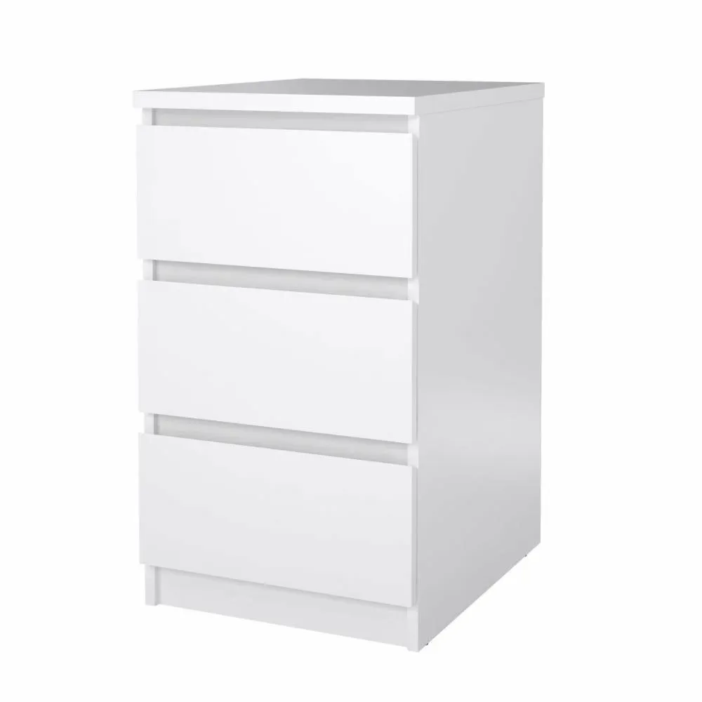 Cassettiera con tre cassetti Calcestruzzo e Bianco lucido. E' disponibile in Nero frassine, Nero opaco,Calcestruzzo e Bianco lucido
