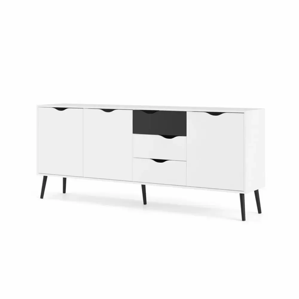 Madia con tre cassetti e tre ante colore Bianco e Nero opaco. E' disponibile in versione Bianco e Rovere