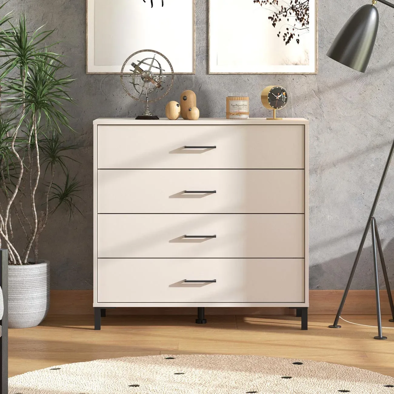 Cassettiera Cashmere a 4 cassetti con maniglie nere