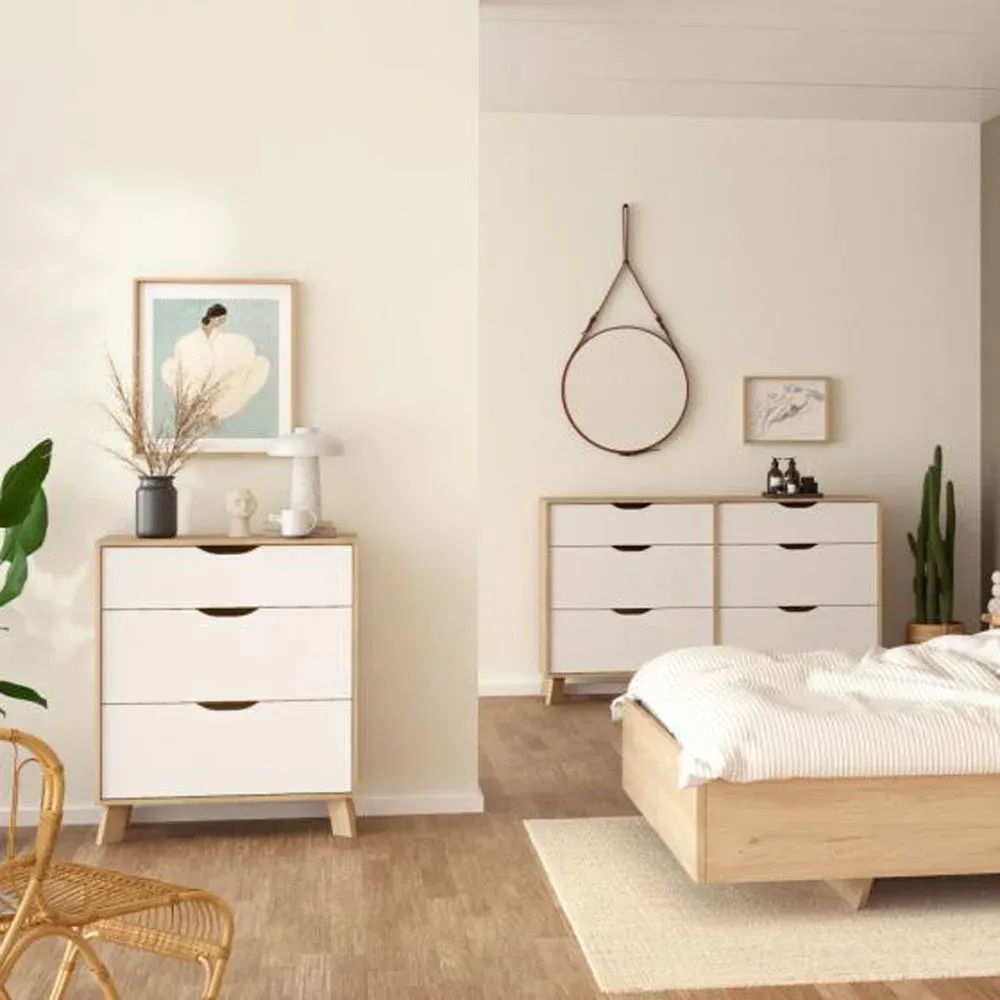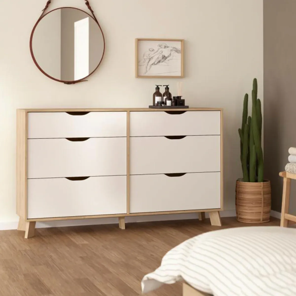Nuova cassettiera composta da 6 cassetti in finitura Bianco e Rovere