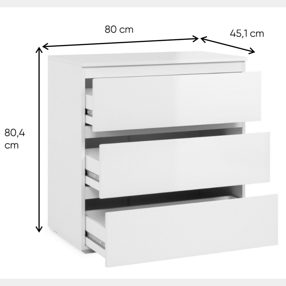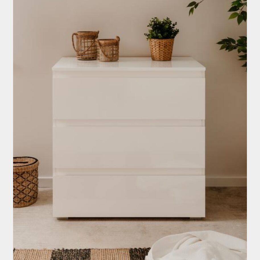 Questo Comò 3 cassetti in finitura Bianco Lucido è stato progettato per permetterti di armonizzare il tuo stile di arredamento, ed è posizionabile in qualsiasi stanza della casa grazie alla sua versatilità.