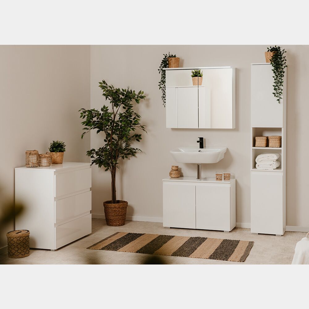 Cassettiera da bagno 3 cassetti, finitura Bianco Lucido