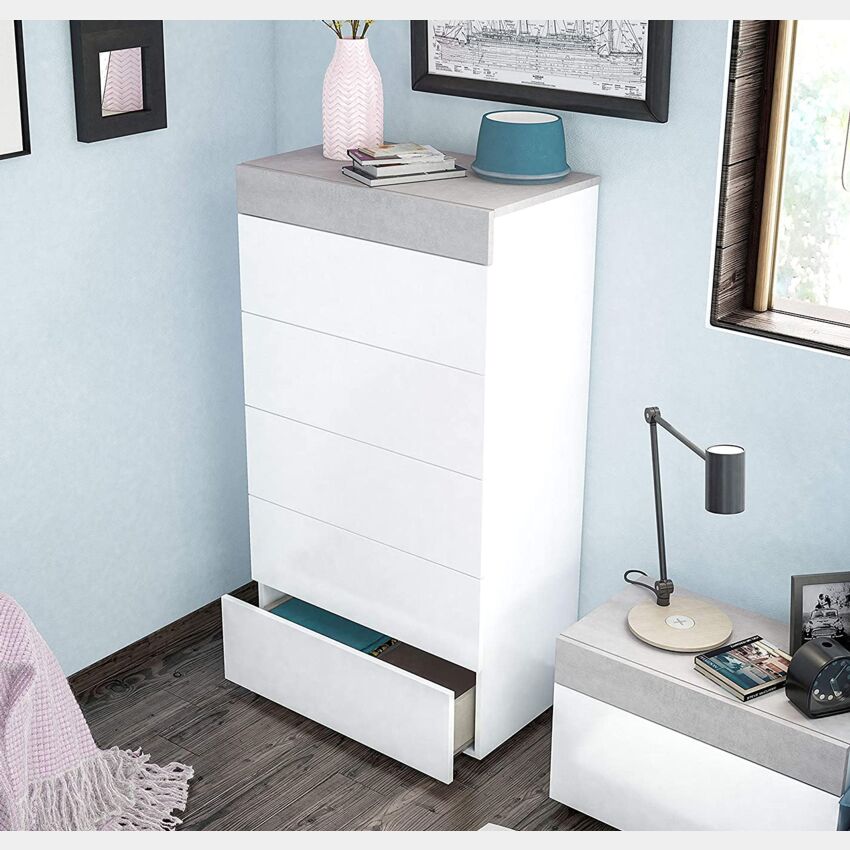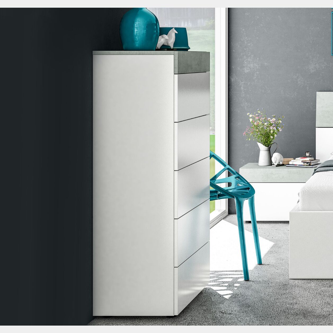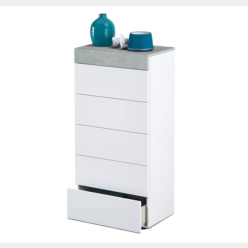 Cassettiera moderna a 5 cassetti, finitura Cemento e Bianca