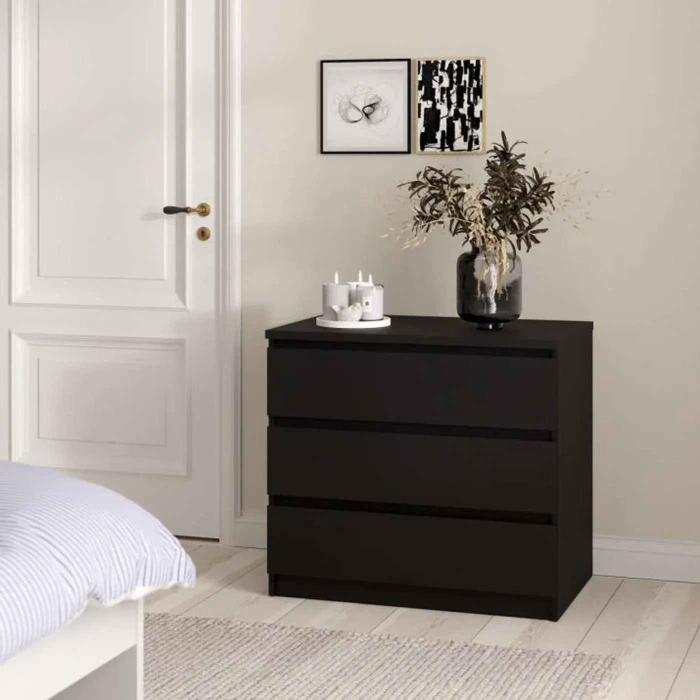 Cassettiera con tre cassetti Nero opaco